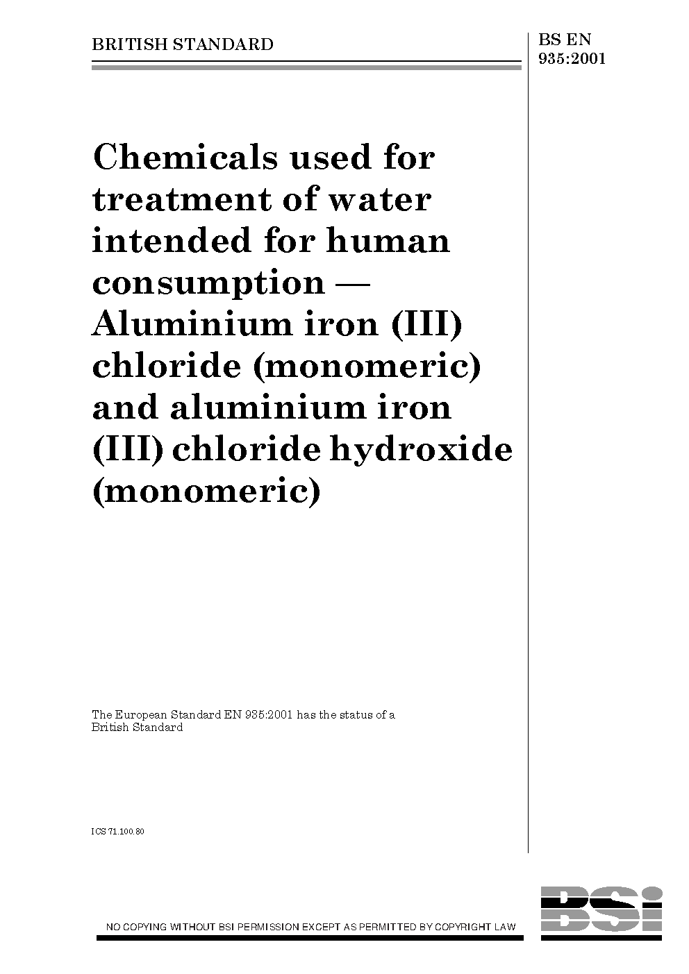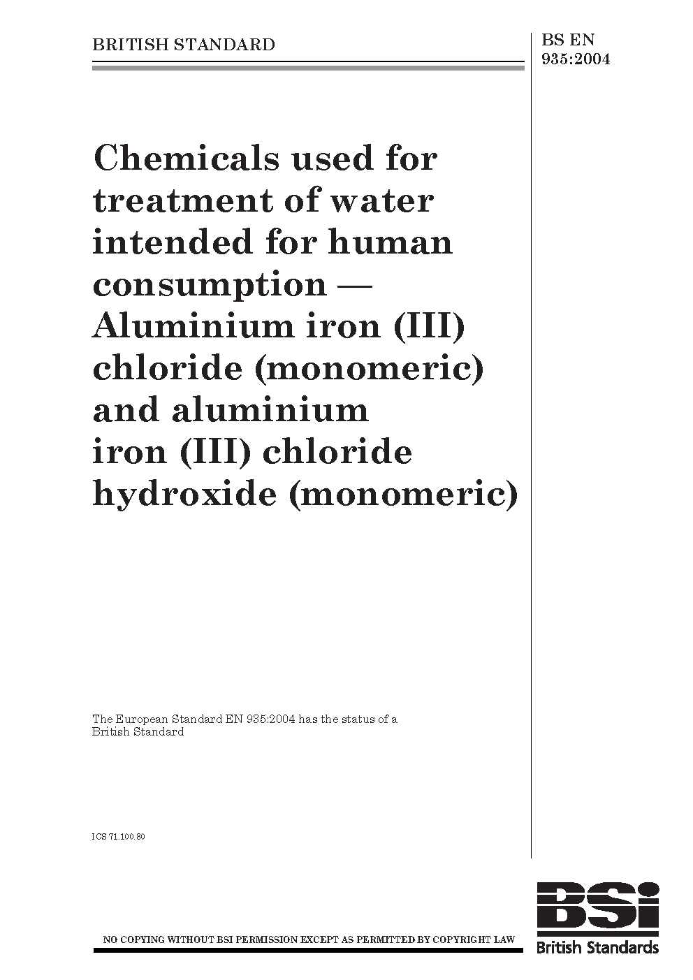 Chemicals used for treatment of water intended for human consumption. Aluminium iron (III) chloride (monomeric) and aluminium iron (III) chloride hydroxide (monomeric)