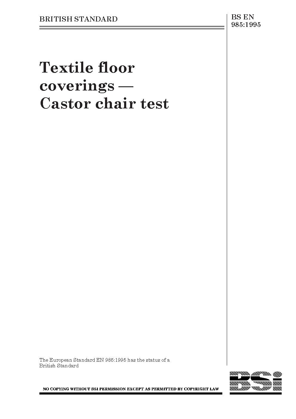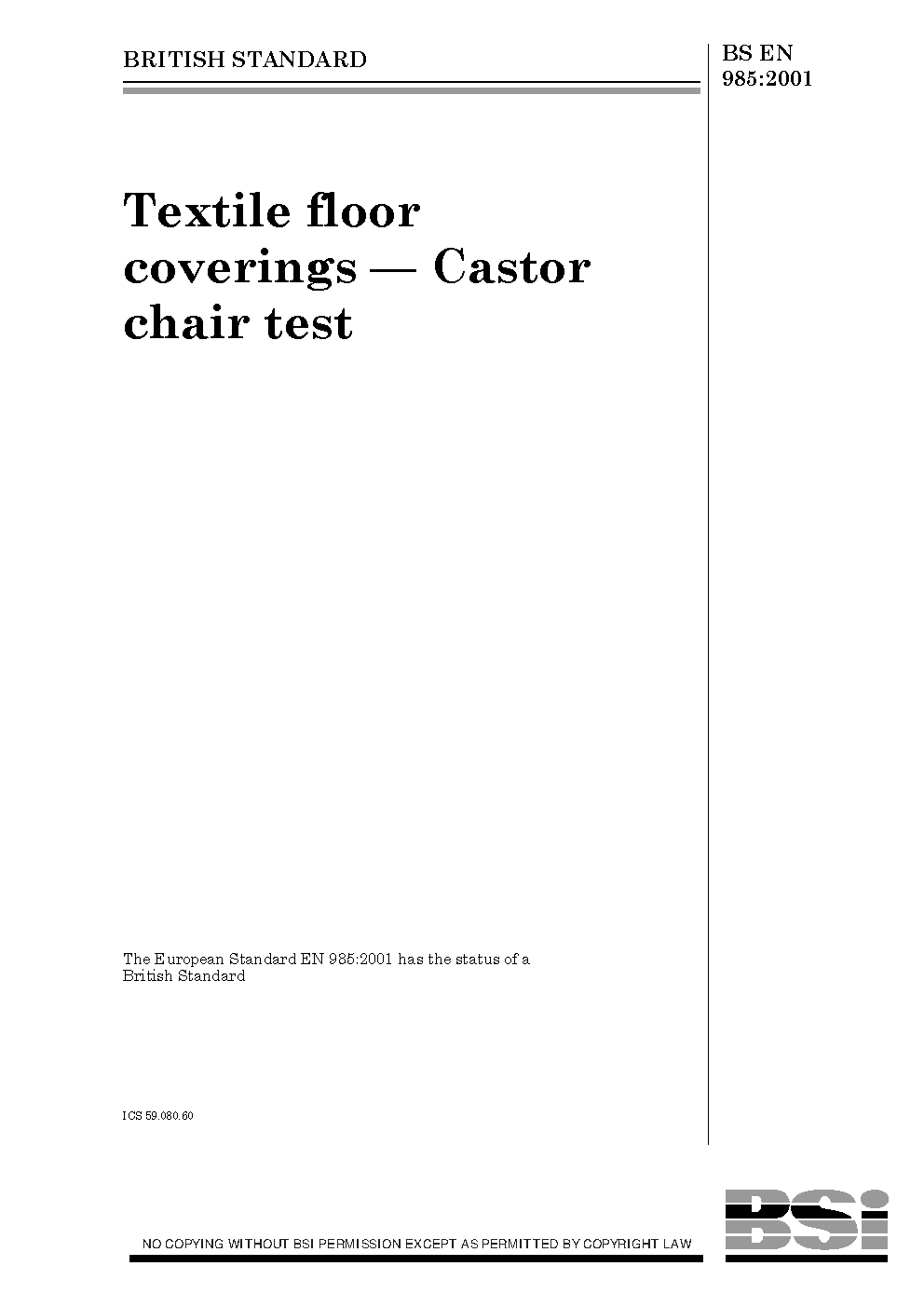 Chairs;Visual inspection (testing);Sheet flooring;Colour tests;Castors;Mechanical testing;Wear tests;Textile testing;Floor coverings;Mechanical components;Textile floor coverings