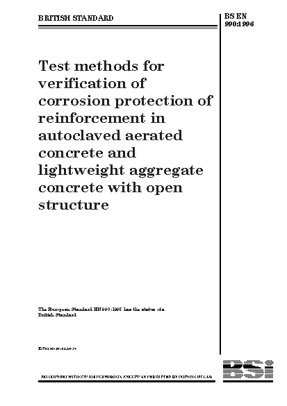 Test methods for verification of corrosion protection of reinforcement in autoclaved aerated concrete and lightweight aggregate concrete with open structure