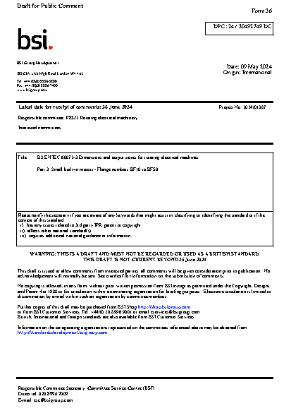 Rotating electrical machines. Dimensions and output series Small built-in motors. Flange numbers BF10 to BF50