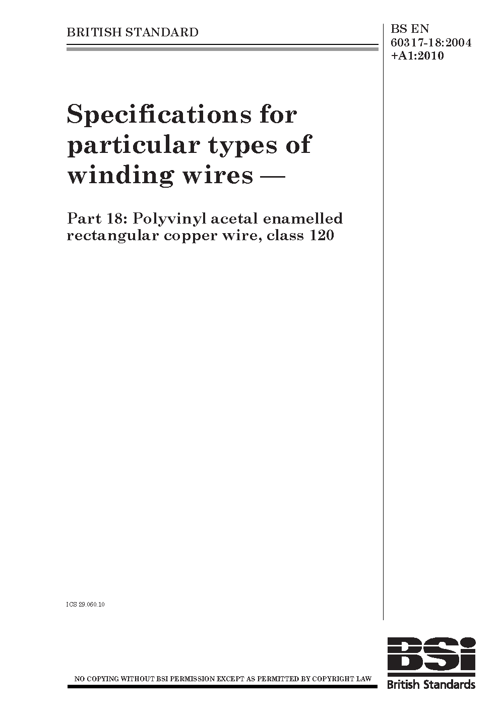 Specifications for particular types of winding wires Polyvinyl acetal enamelled rectangular copper wire, class 120
