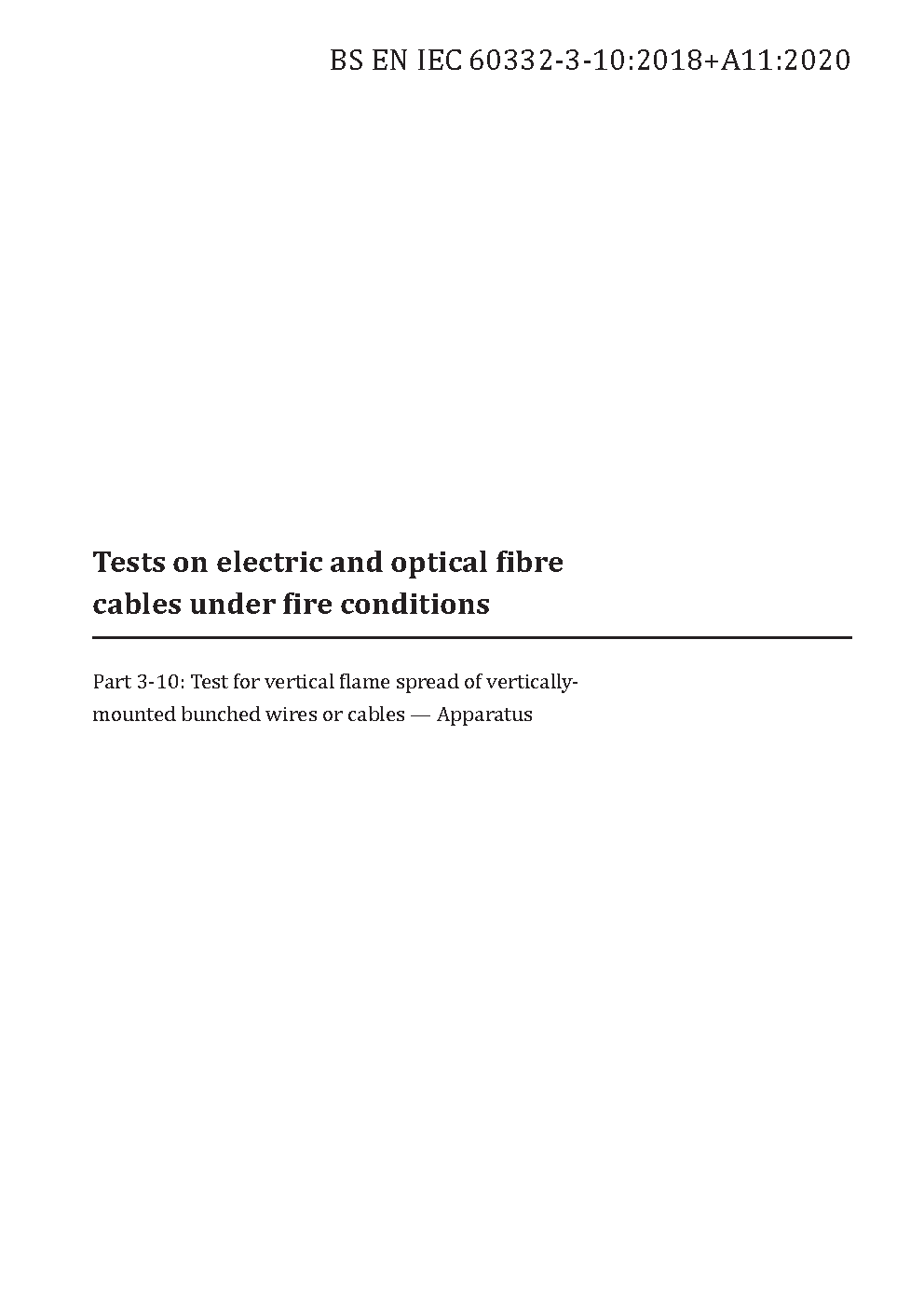 Tests on electric and optical fibre cables under fire conditions Test for vertical flame spread of vertically-mounted bunched wires or cables. Apparatus