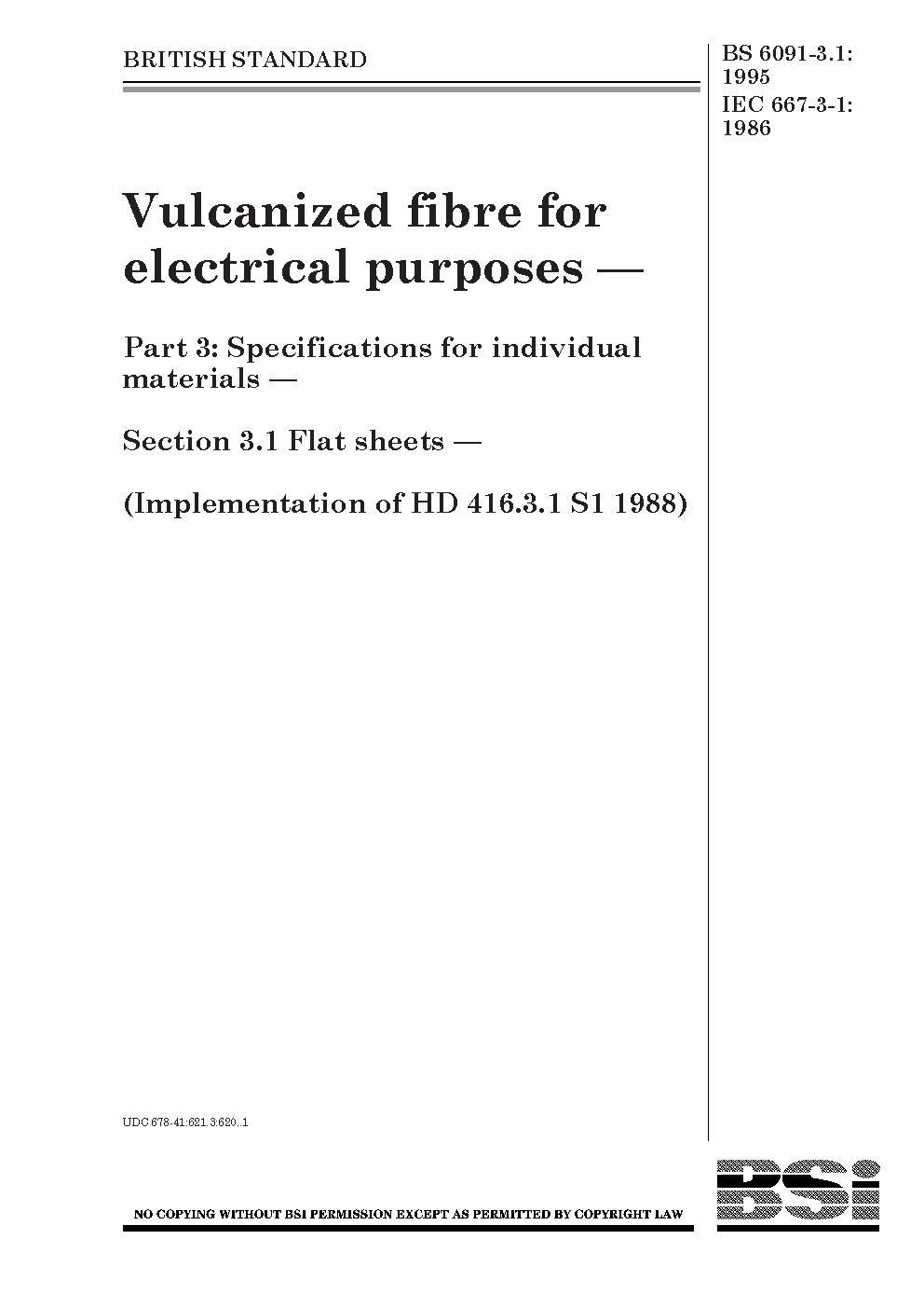 Vulcanized fibre for electrical purposes Specifications individual materials. Sheet 1. Flat sheets