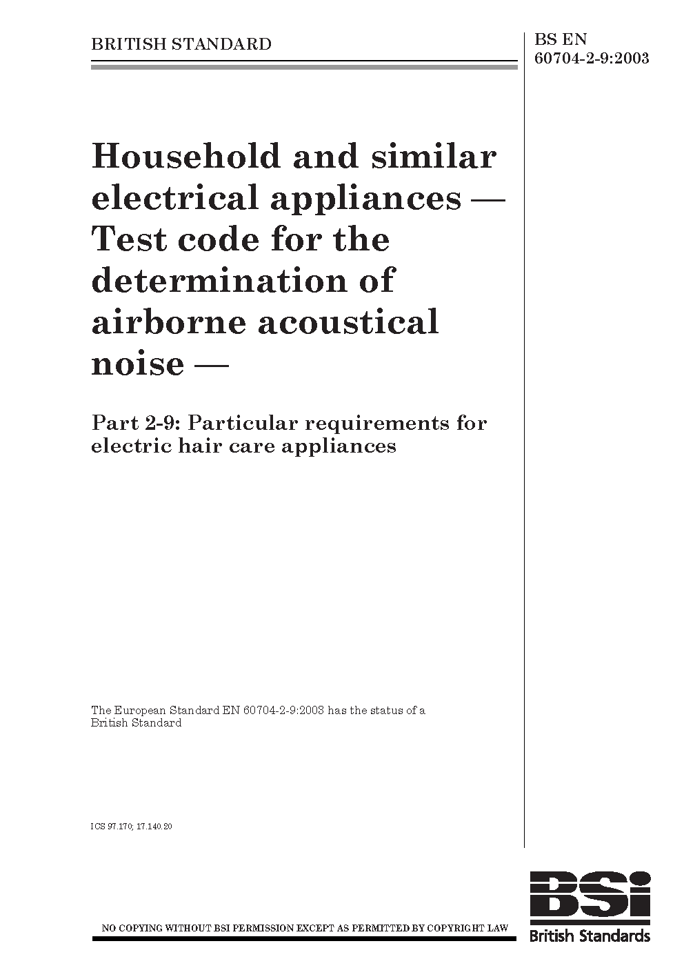 Household and similar electrical appliances. Test code for the determination of airborne acoustical noise Particular requirements electric hair care appliances