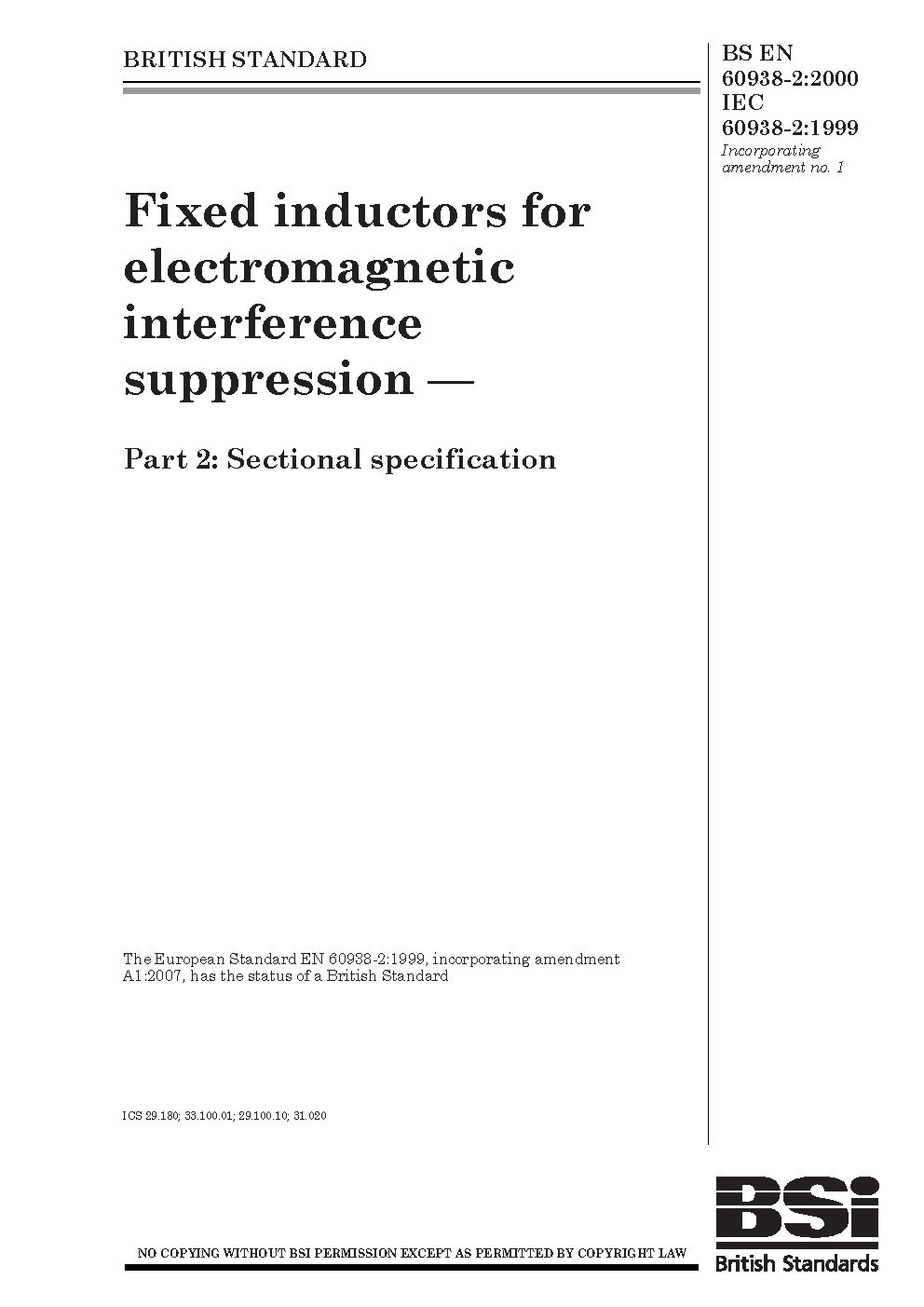 Fixed inductors for electromagnetic interference suppression Sectional specification on power line chokes