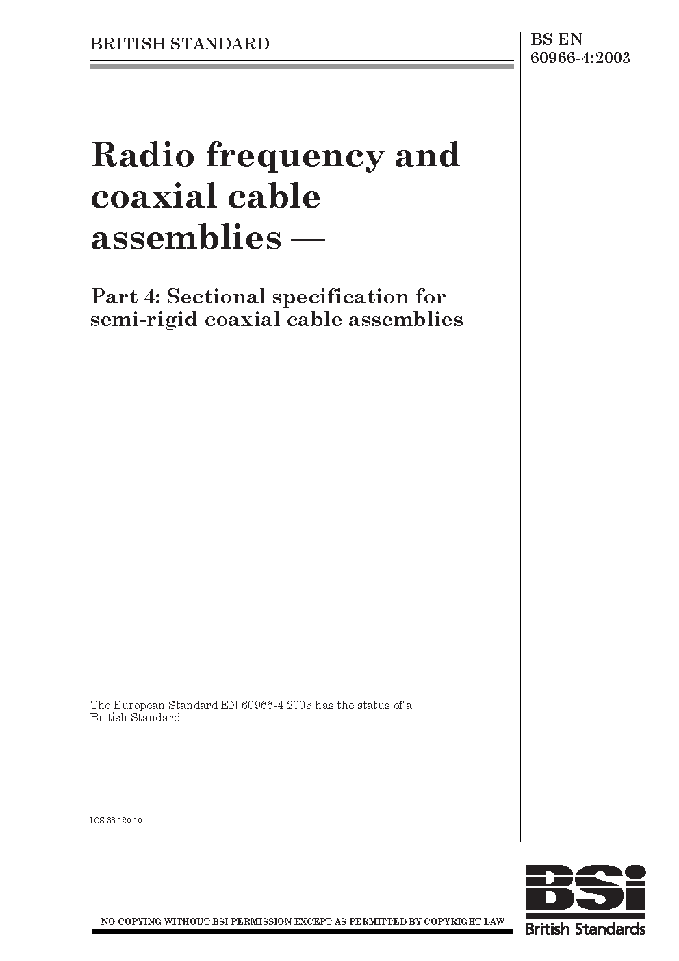 Radio frequency and coaxial cable assemblies Sectional specification for semi-rigid