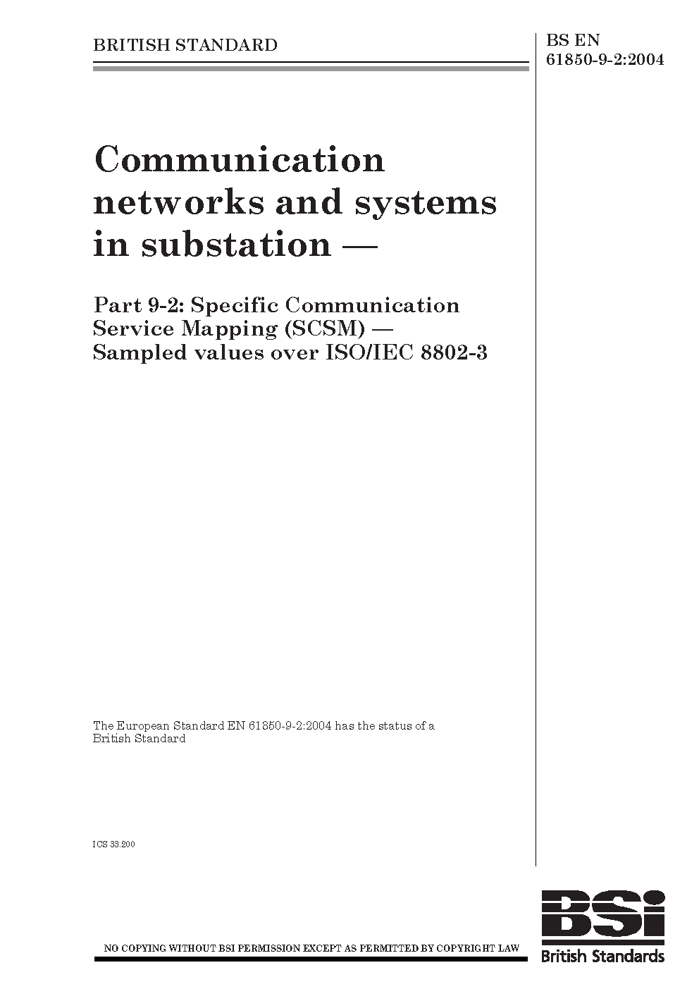 Communication networks and systems for power utility automation Specific communication service mapping (SCSM). Sampled values over ISO/IEC 8802-3