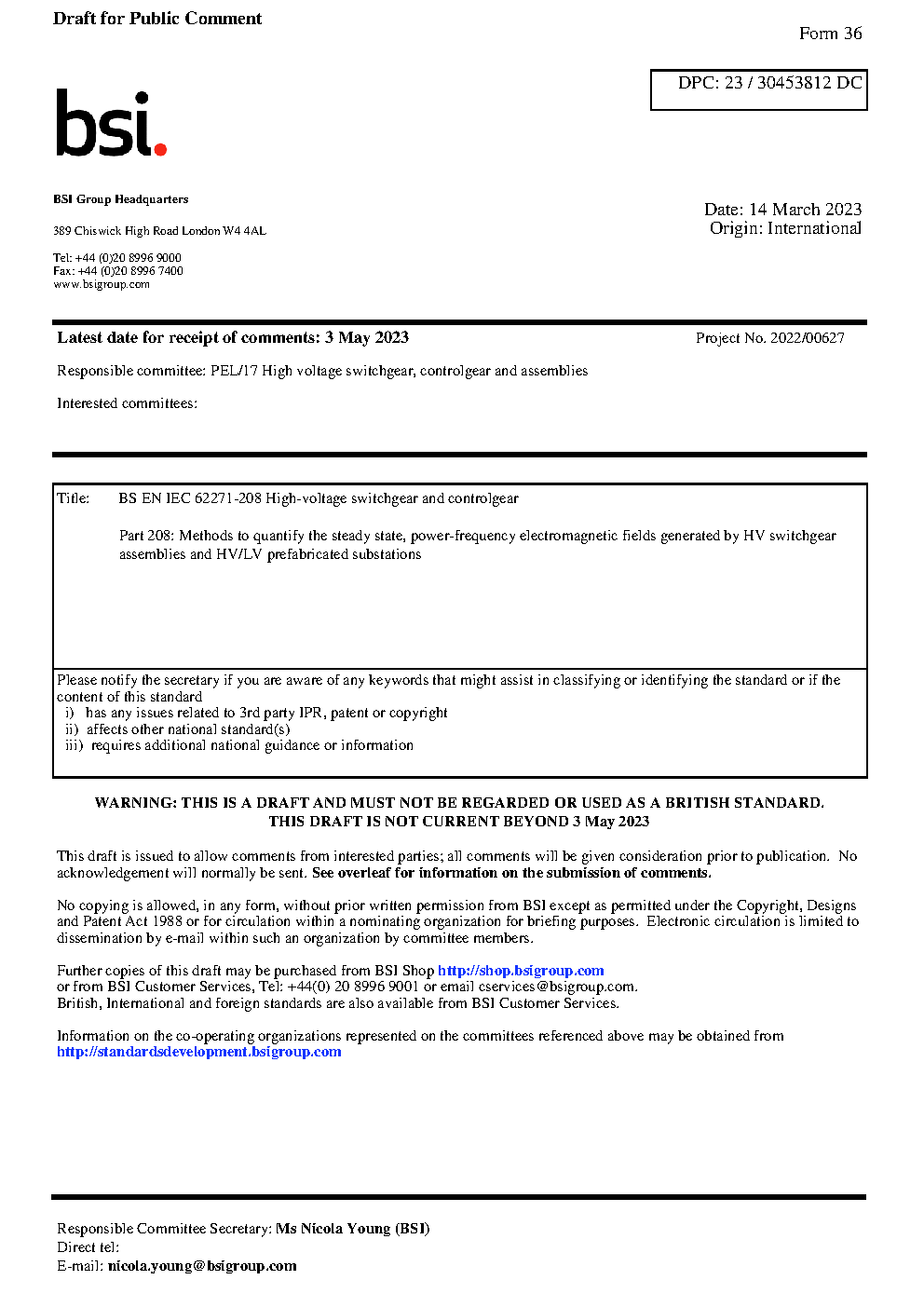 High-voltage switchgear and controlgear Methods to quantify the steady state, power-frequency electromagnetic fields generated by HV assemblies HV/LV prefabricated substations, both for rated voltages above 1 kV up including 52