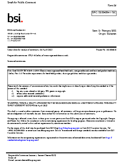 Electric motor-operated hand-held tools, transportable tools and lawn garden machinery. Safety Particular requirements for grinders, disc-type polishers sanders