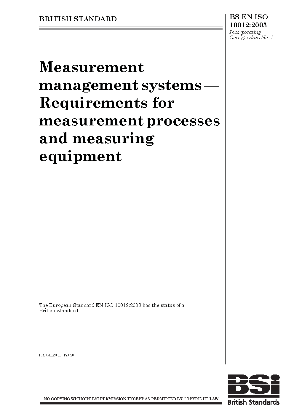 BS EN ISO 10012:2003