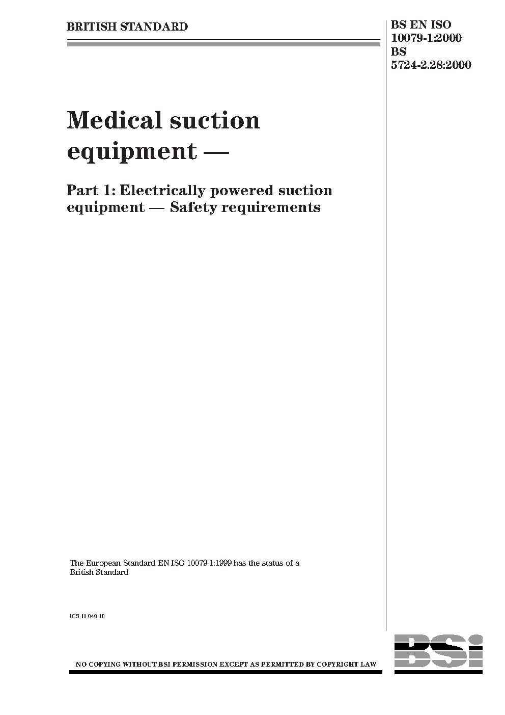 Medical suction equipment Electrically powered equipment. Safety requirements