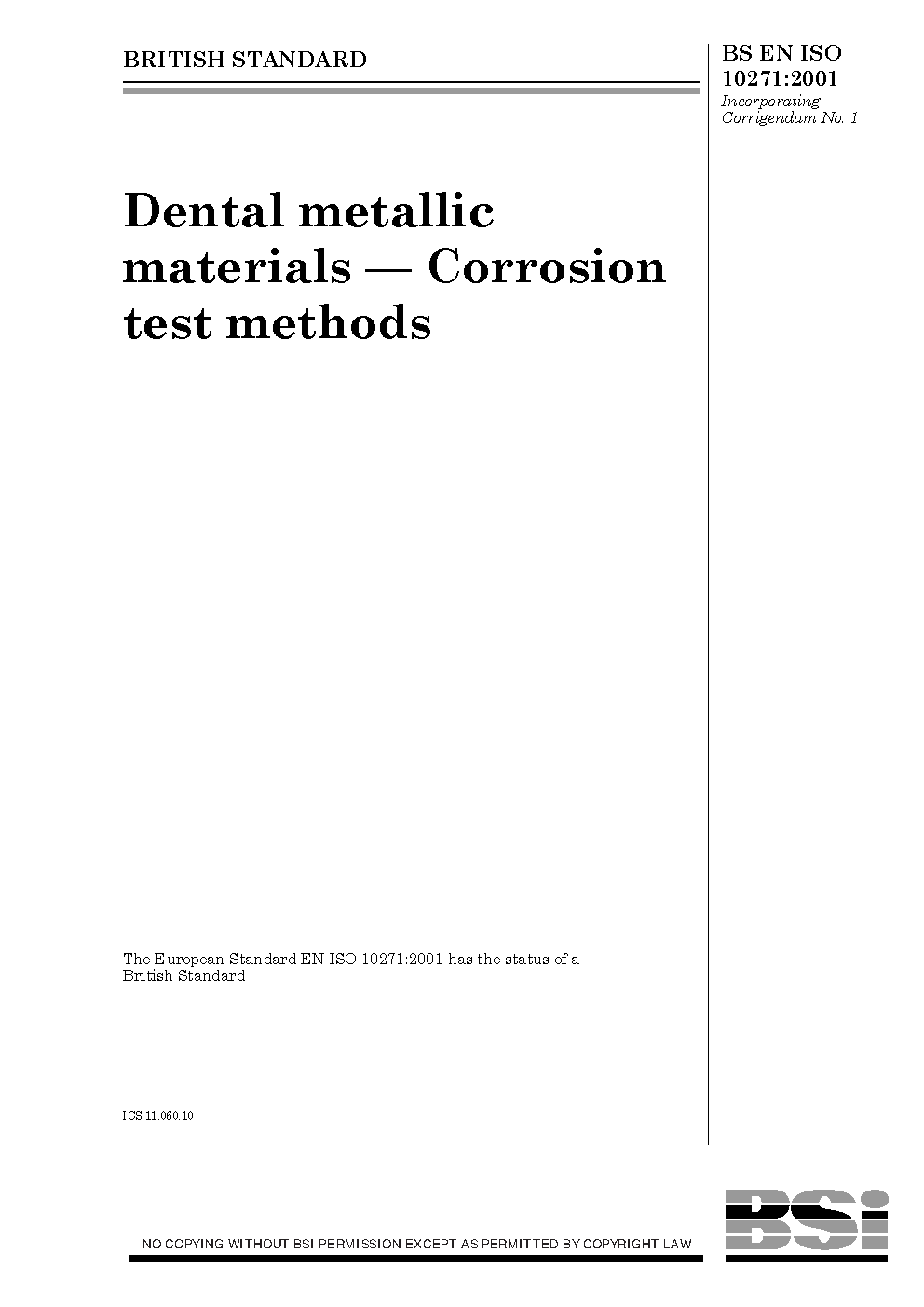 Dental materials;Dentistry;Electrochemical methods;Dental filling materials;Tarnish;Immersion tests (corrosion);Electrochemical corrosion;Alloys;Dental prosthesis;Metals;Corrosion tests;Visual inspection (testing)