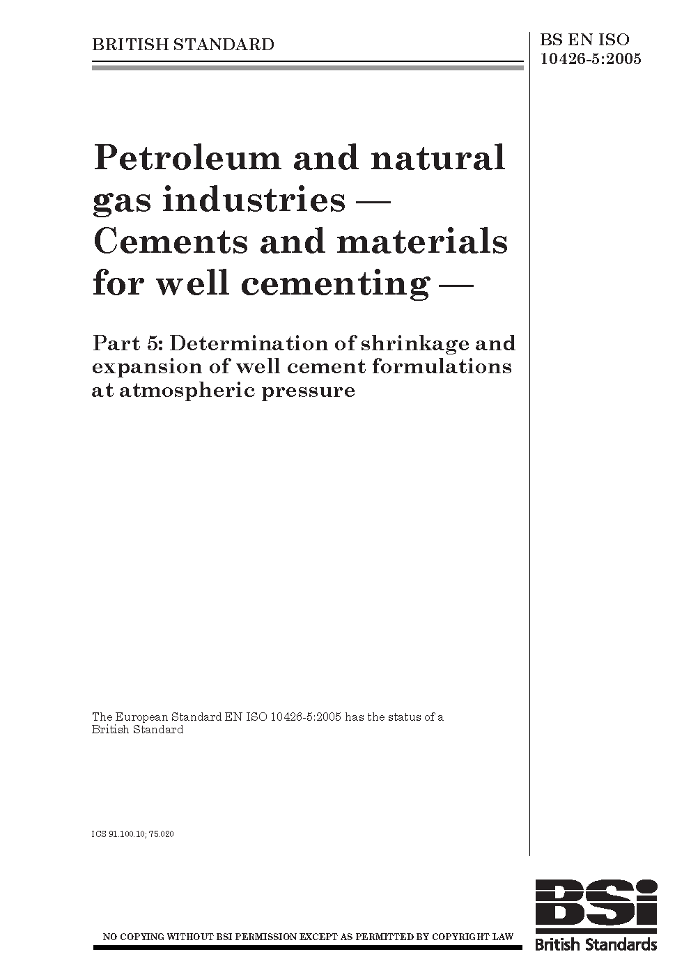BS EN ISO 10426-5:2005