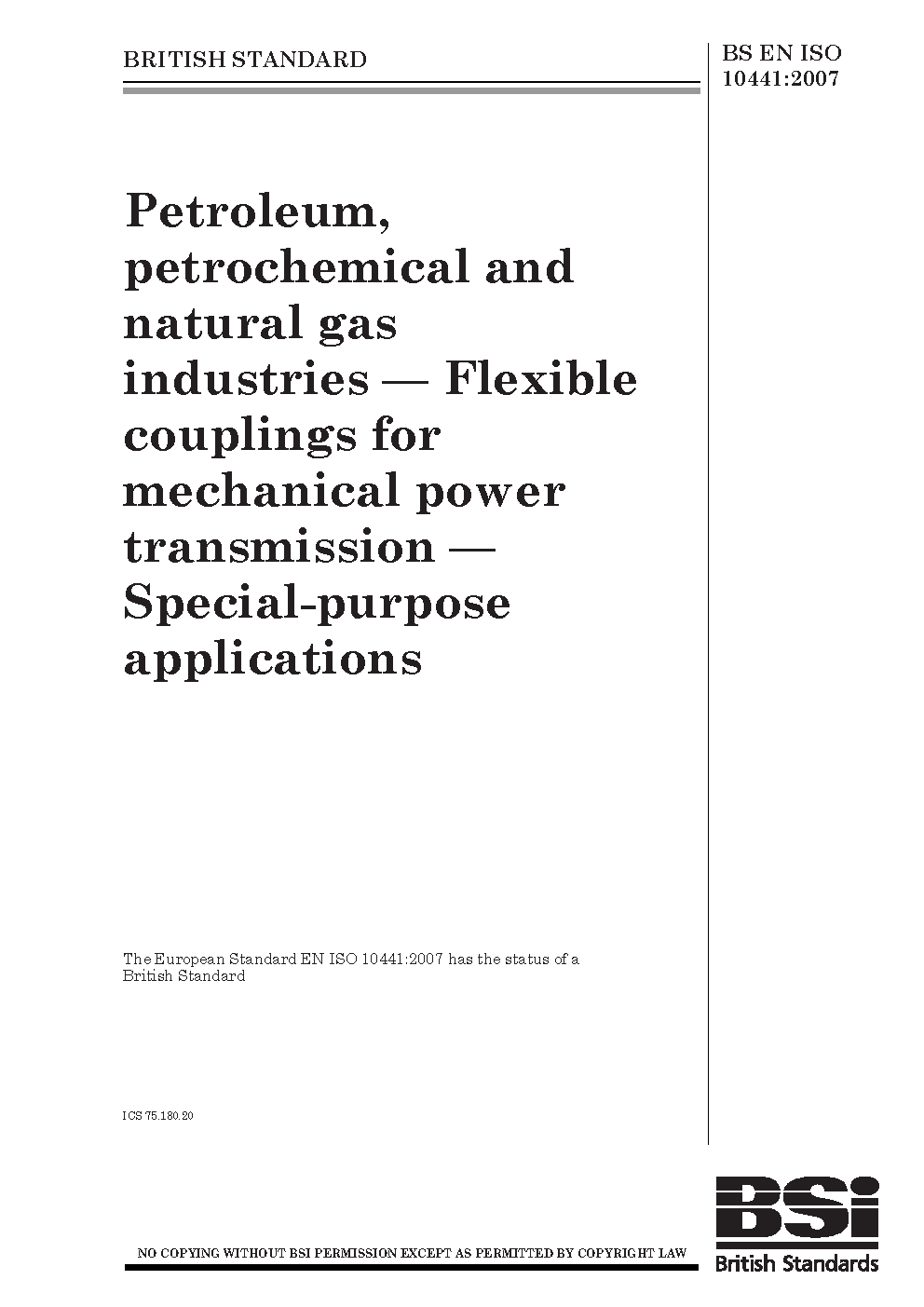 Petroleum, petrochemical and natural gas industries. Flexible couplings for mechanical power transmission. Special-purpose applications