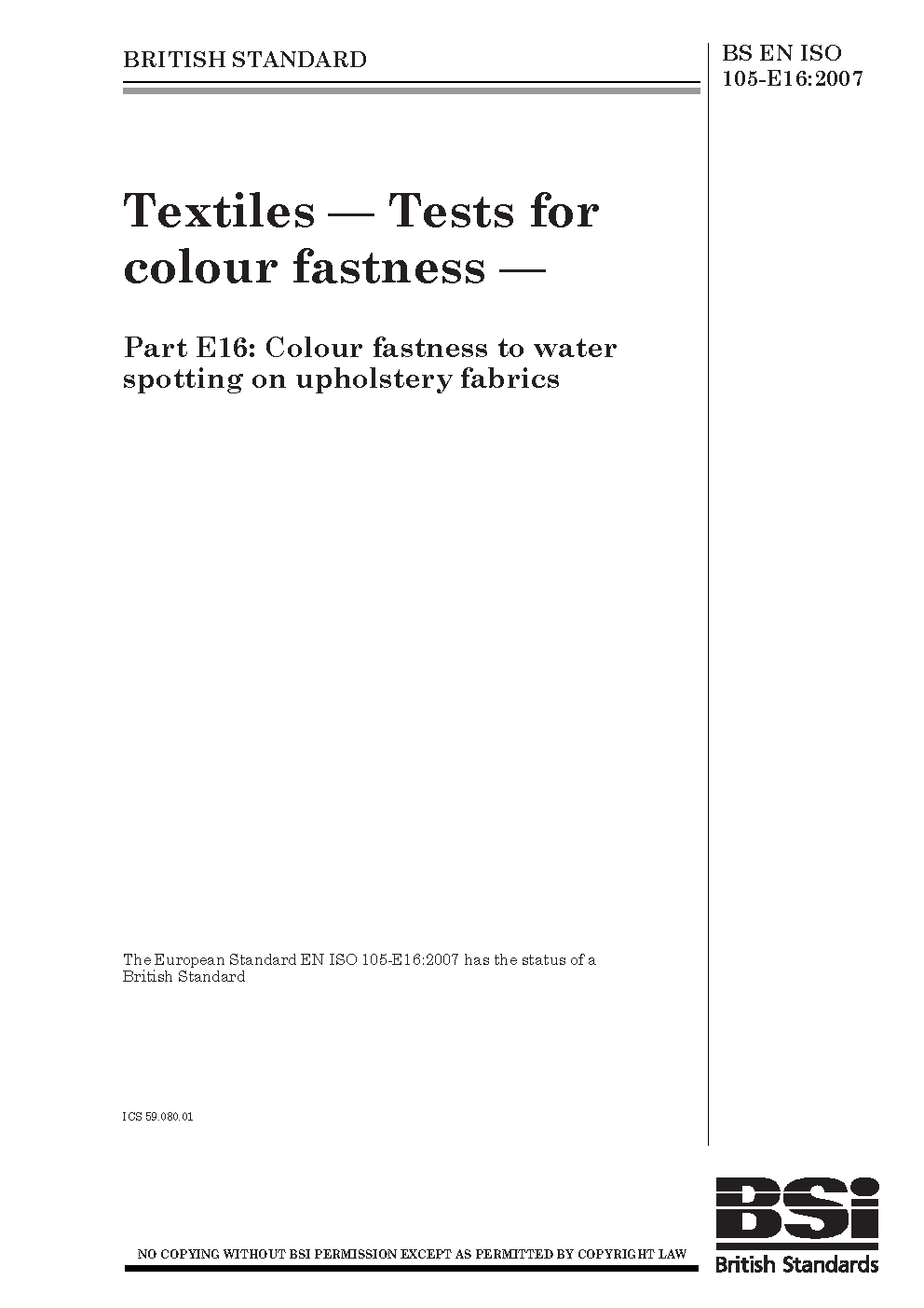 Textiles. Tests for colour fastness Colour to water spotting on upholstery fabrics