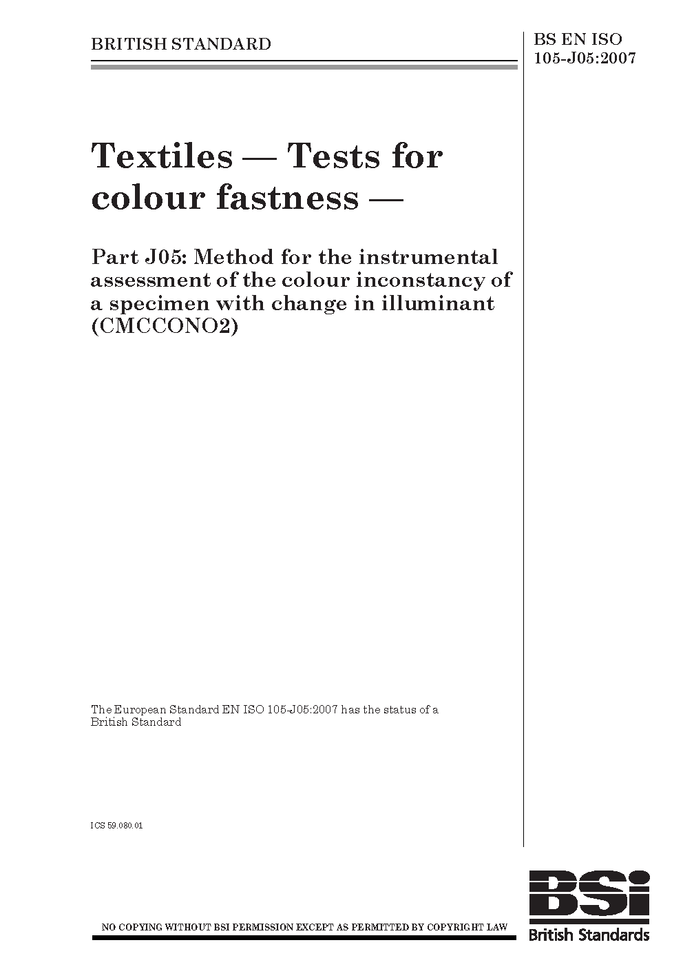 BS EN ISO 105-J05:2007