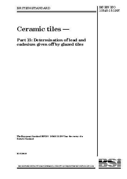 Determination of content;Cadmium;Ceramic and glass technology;Test specimens;Construction materials;Ceramics;Tiles;Specimen preparation;Extraction methods of analysis;Lead
