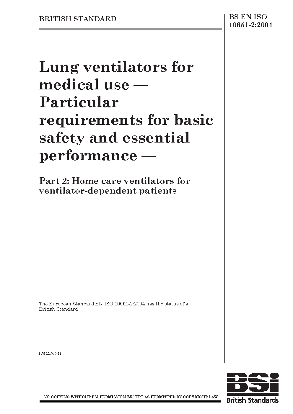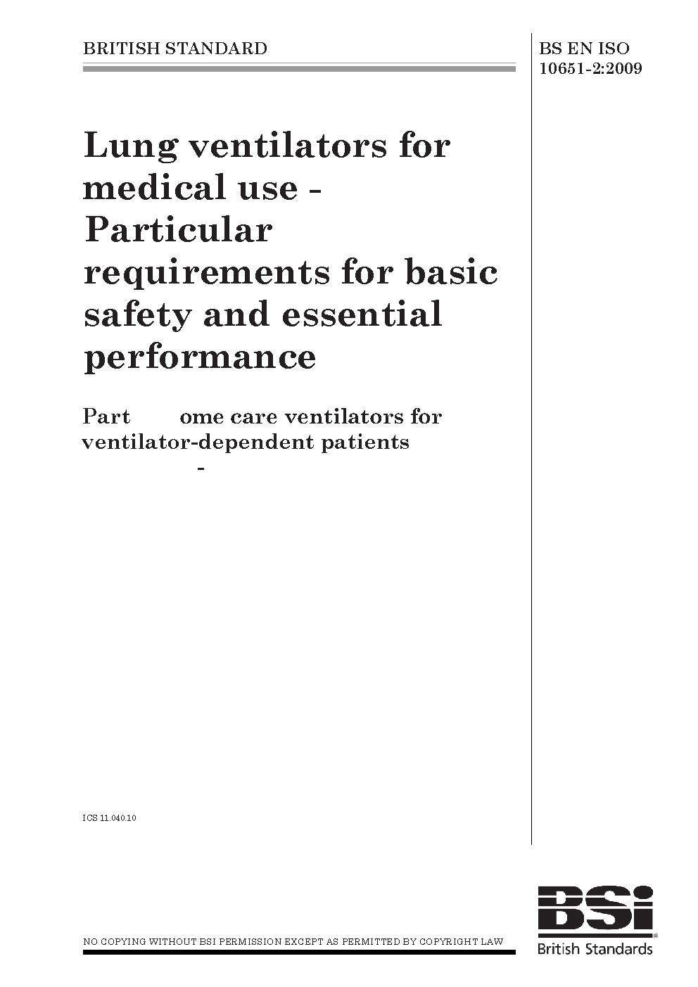 Lung ventilators for medical use. Particular requirements basic safety and essential performance Home care ventilator-dependent patients