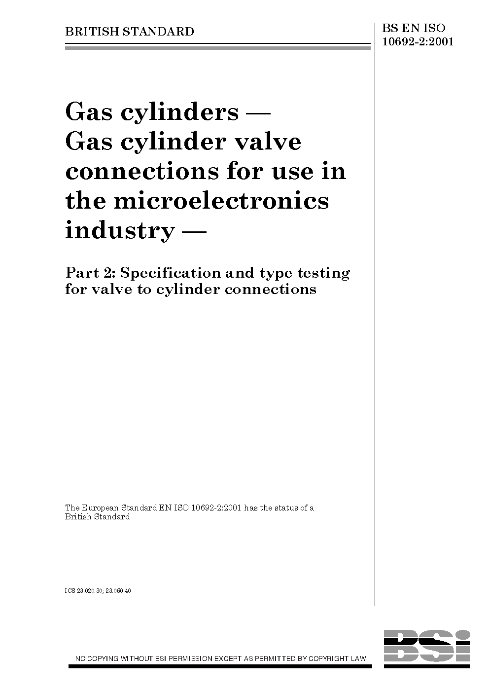 Gas cylinders. cylinder valve connections for use in the microelectronics industry Specification and type testing to