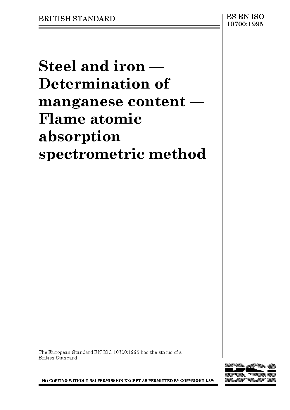 Precision;Atomic absorption spectrophotometry;Iron;Steels;Chemical analysis and testing;Determination of content;Test equipment;Reproducibility;Flame photometry;Manganese;Quantitative analysis