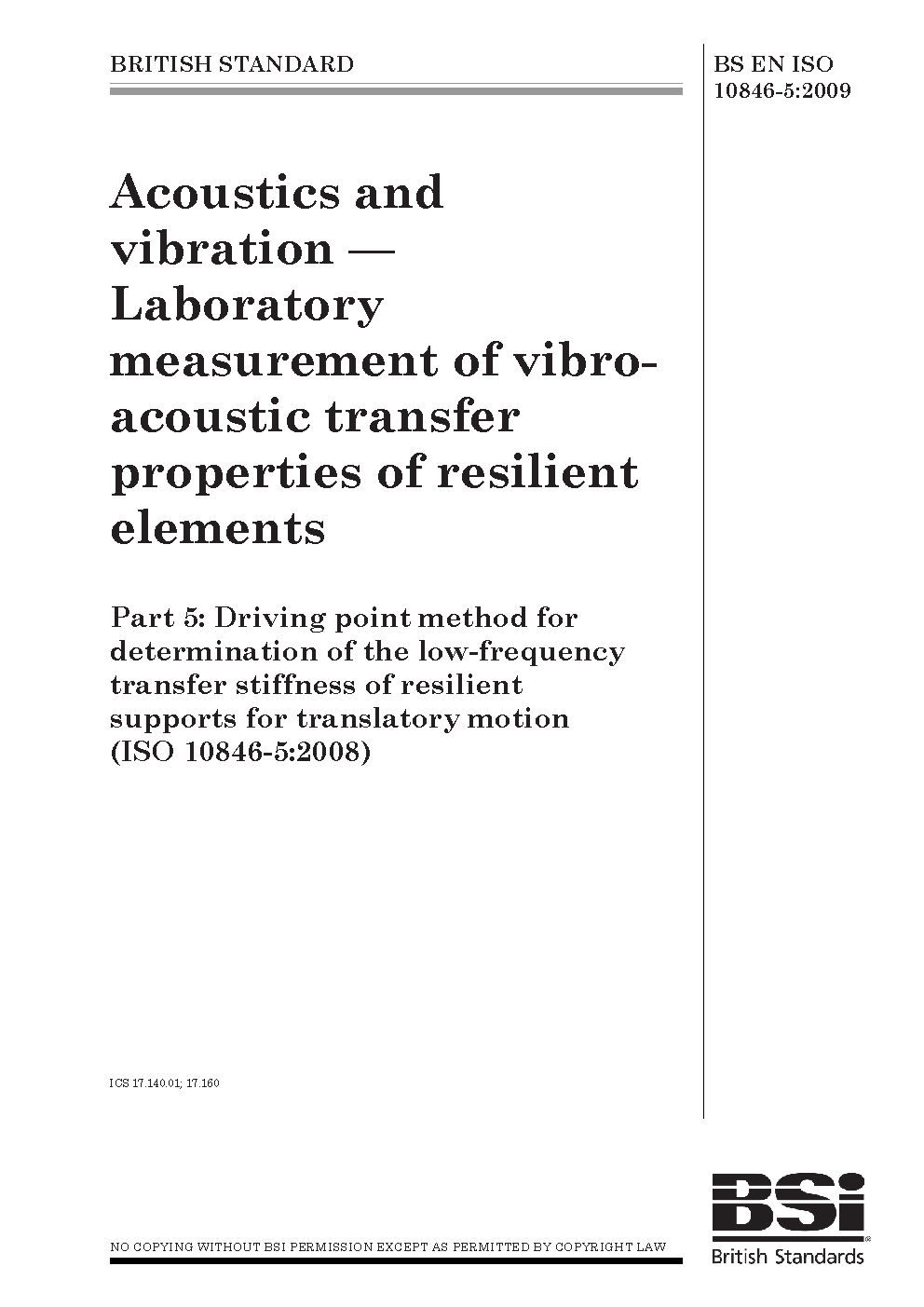 Acoustics and vibration. Laboratory measurement of vibro-acoustic transfer properties resilient elements Driving point method for determination the low-frequency stiffness supports translatory motion