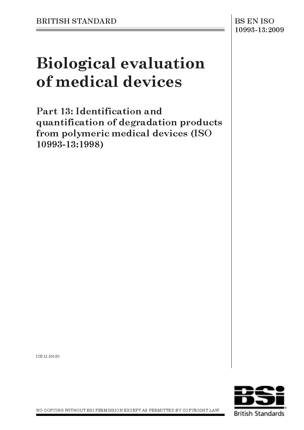 Biological evaluation of medical devices Identification and quantification degradation products from polymeric