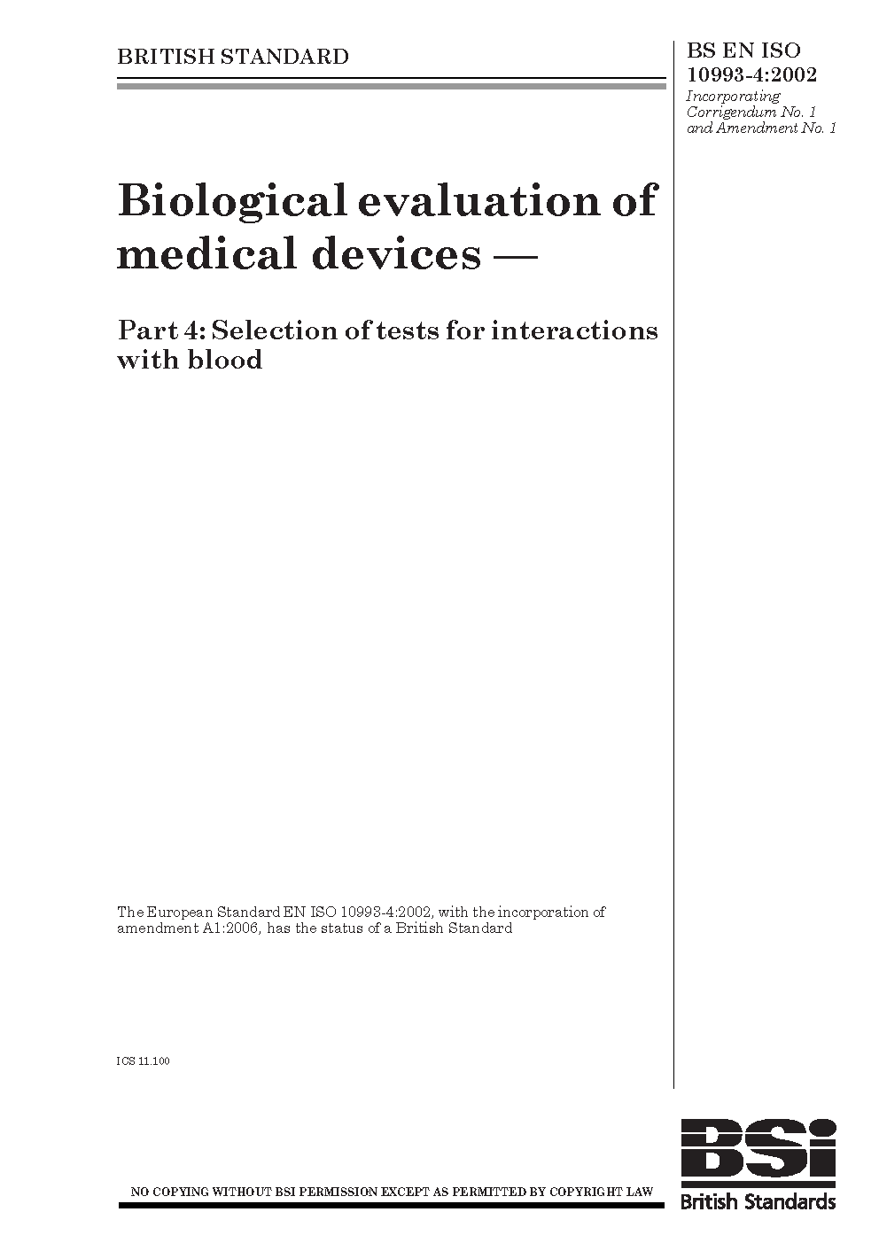 BS EN ISO 10993-4:2009
