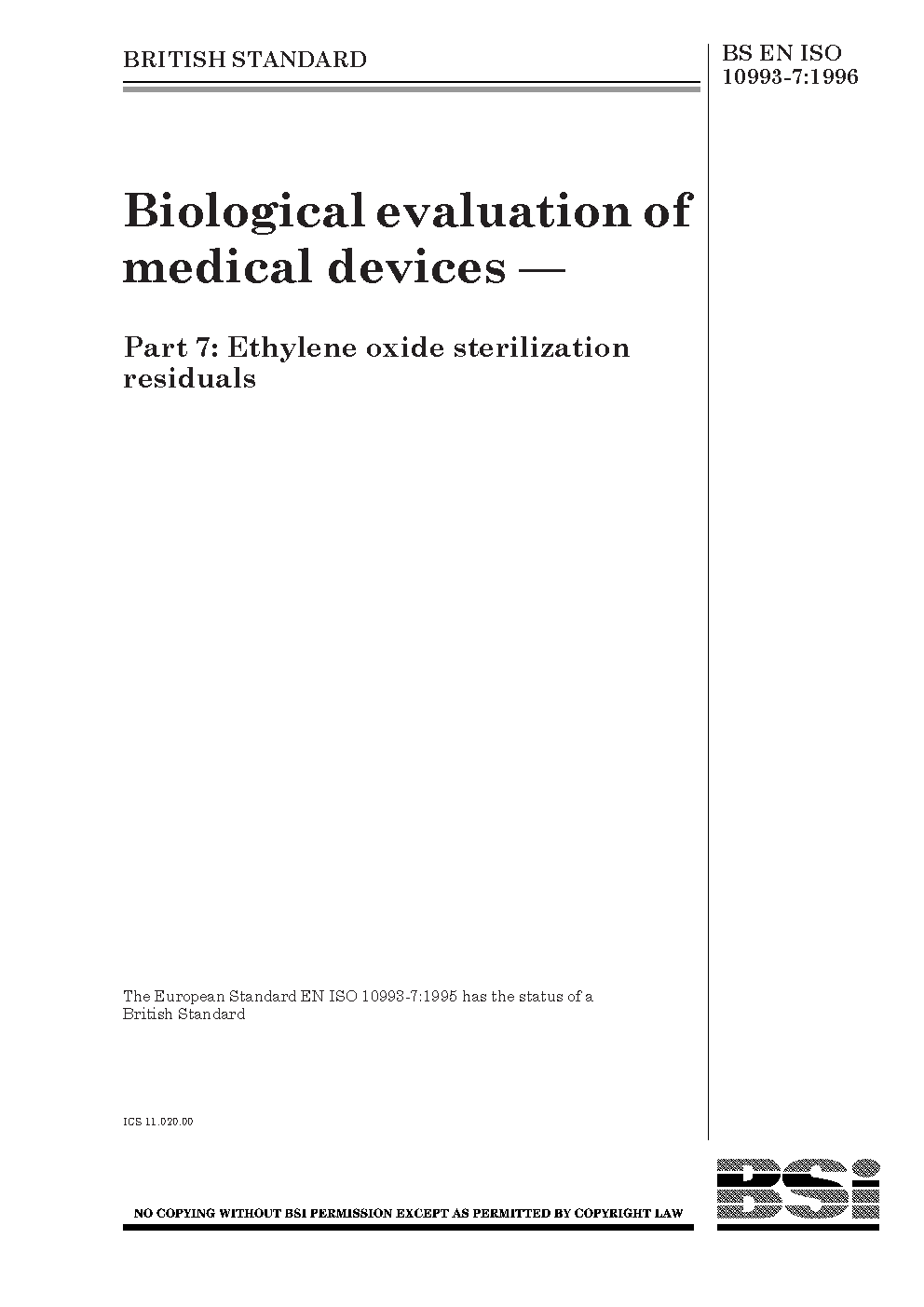 BS EN ISO 10993-7:1996