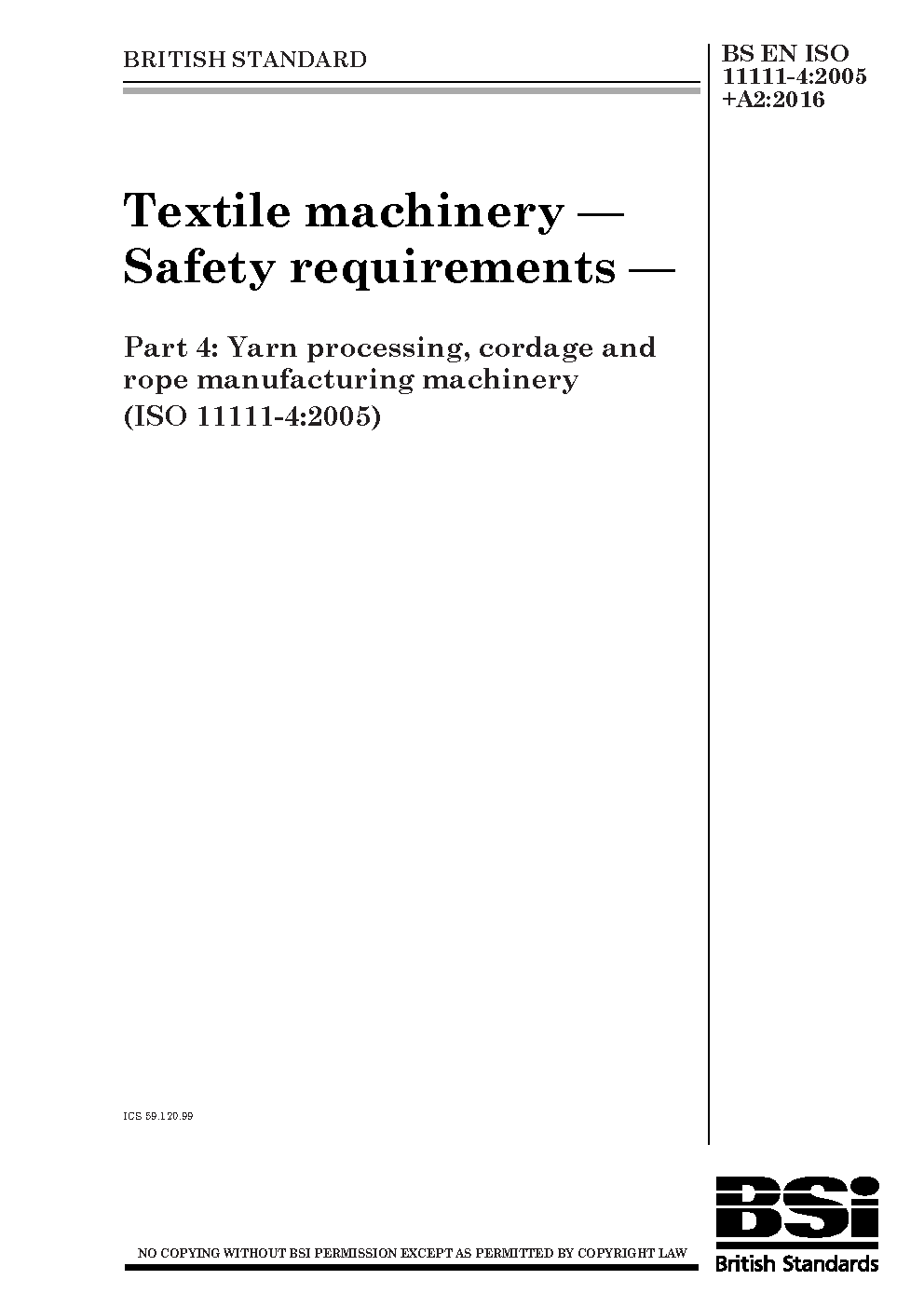 Textile machinery. Safety requirements Yarn processing, cordage and rope manufacturing machinery