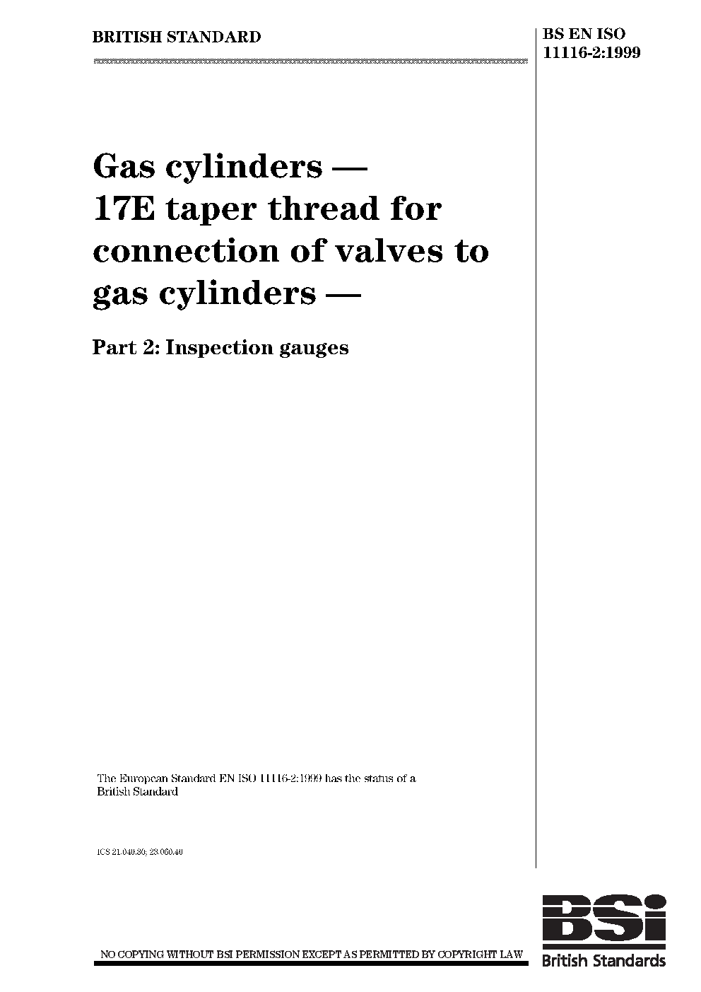 Gas cylinders. 17E taper thread for connection of valves to gas cylinders Inspection gauges