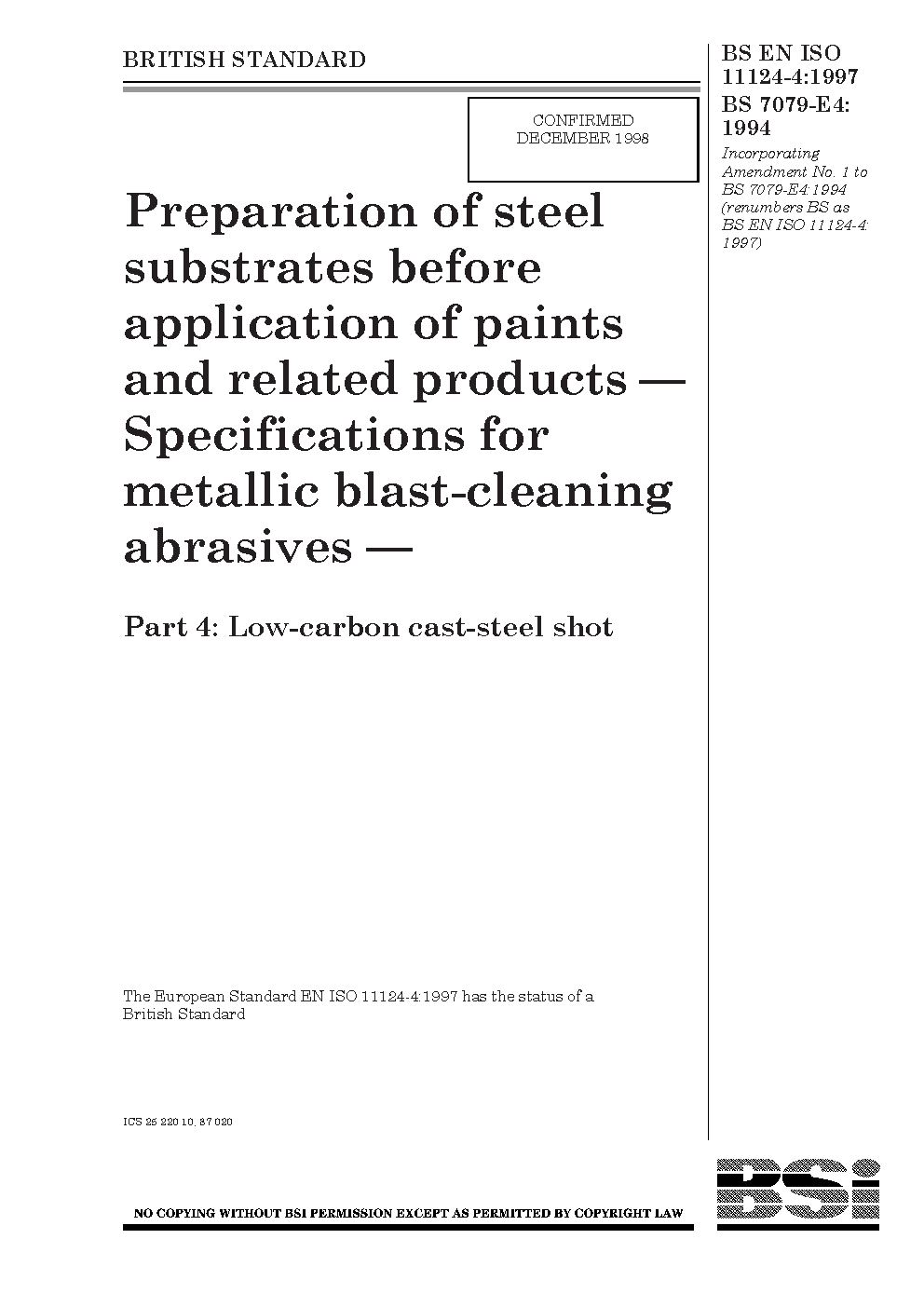 Preparation of steel substrates before application paints and related products. Specifications for metallic blast-cleaning abrasives Low-carbon cast-steel shot