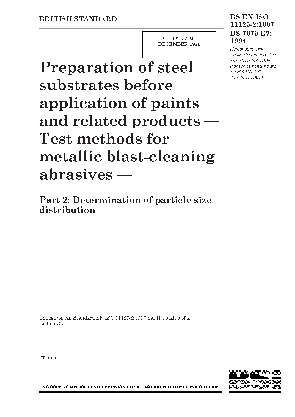 Preparation of steel substrates before application paints and related products. Test methods for metallic blast-cleaning abrasives Determination particle size distribution