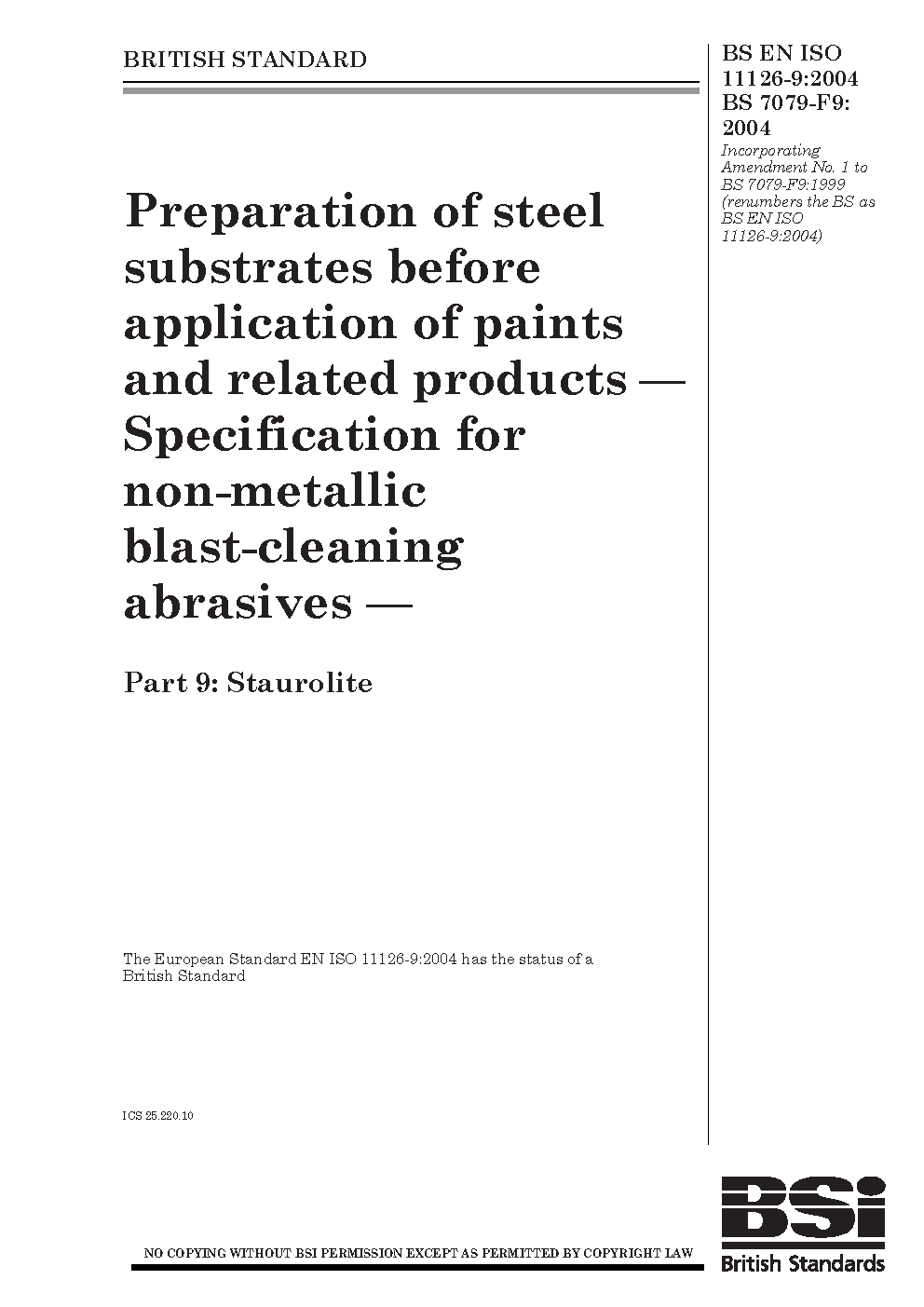 Preparation of steel substrates before application paints and related products. Specifications for non-metallic blast-cleaning abrasives Staurolite