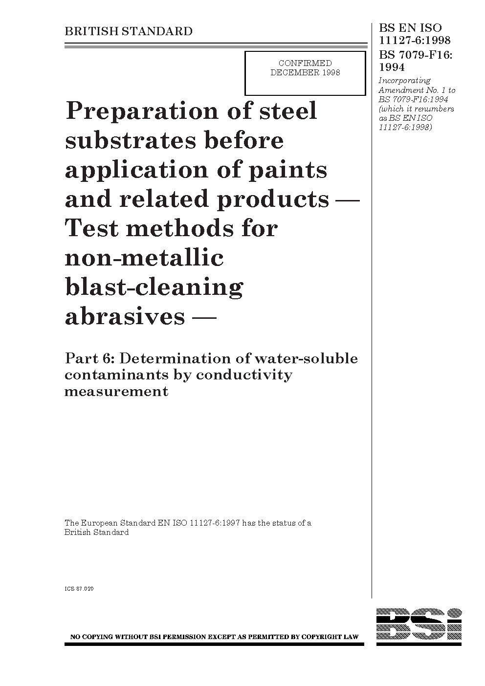 Preparation of steel substrates before application paints and related products. Test methods for non-metallic blast-cleaning abrasives Determination water-soluble contaminants by conductivity measurement