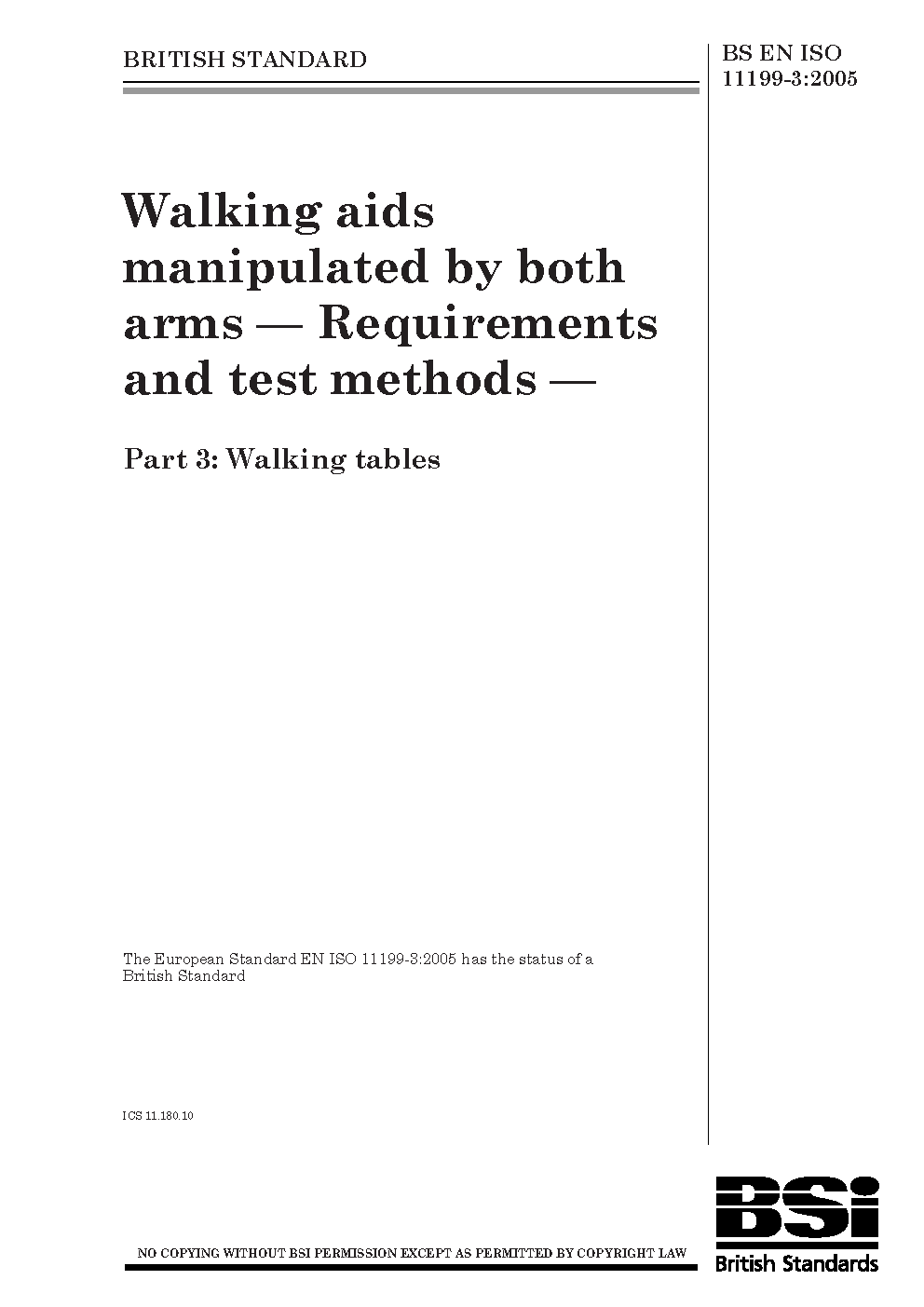 Walking aids manipulated by both arms. Requirements and test methods tables