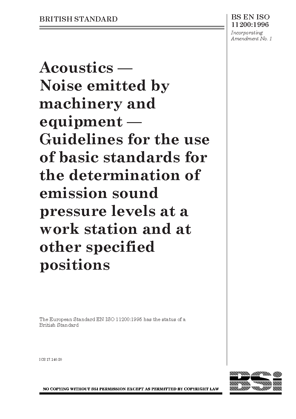 Acoustics. Noise emitted by machinery and equipment. Guidelines for the use of basic standards for the determination of emission sound pressure levels at a work station and at other specified positions