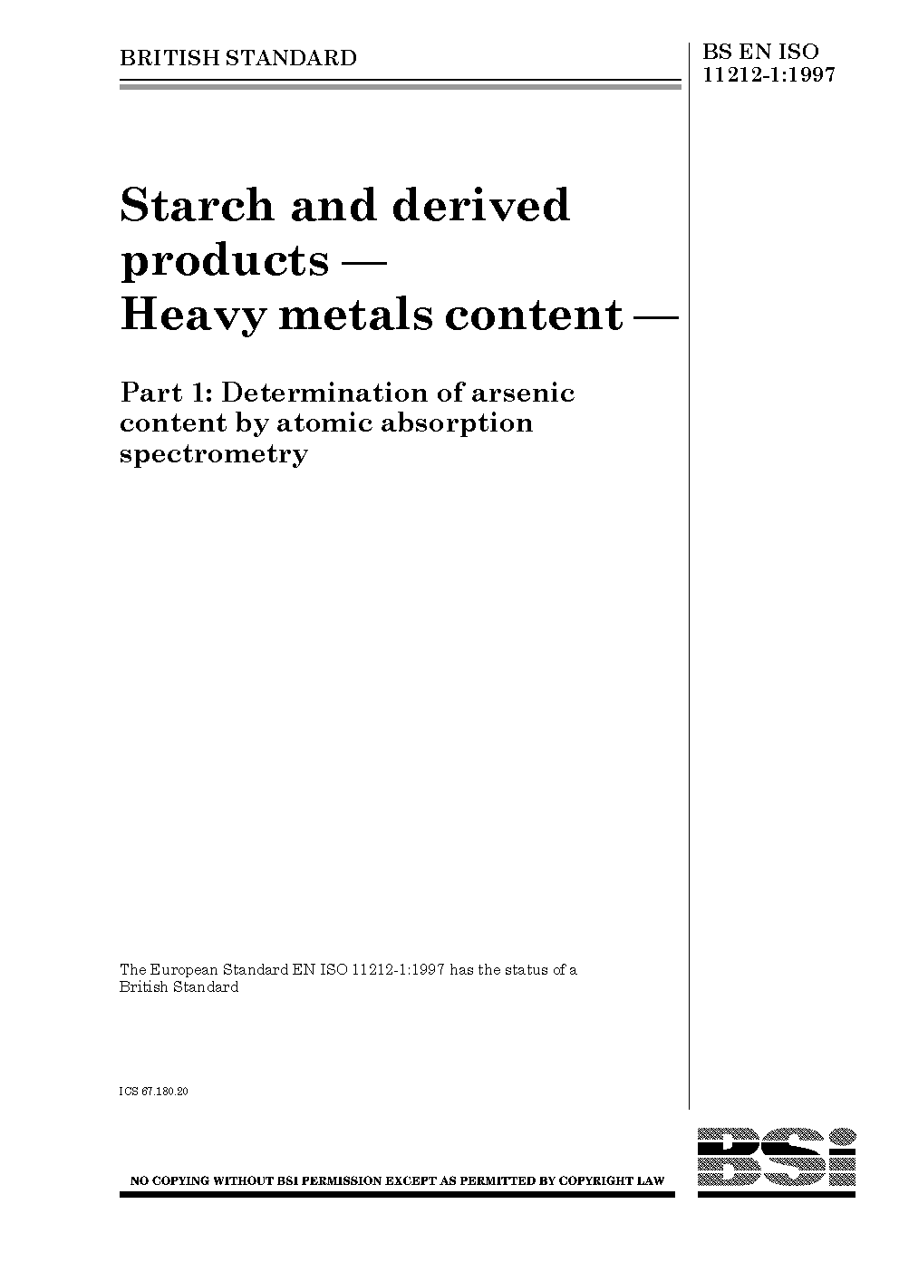 Metals;Heavy;Quantitative analysis;Wheat;Determination of content;Arsenic;Calibration;Atomic absorption spectrophotometry;Test specimens;Chemical analysis and testing;Starches;Reproducibility;Test equipment