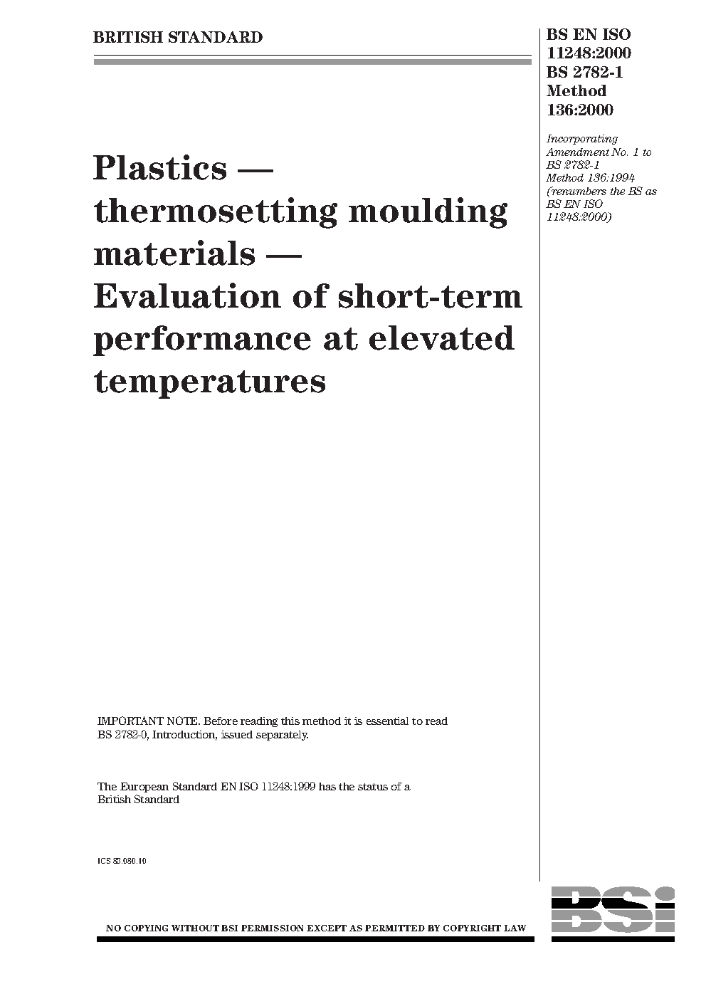 Plastics. Thermosetting moulding materials. Evaluation of short-term performance at elevated temperatures