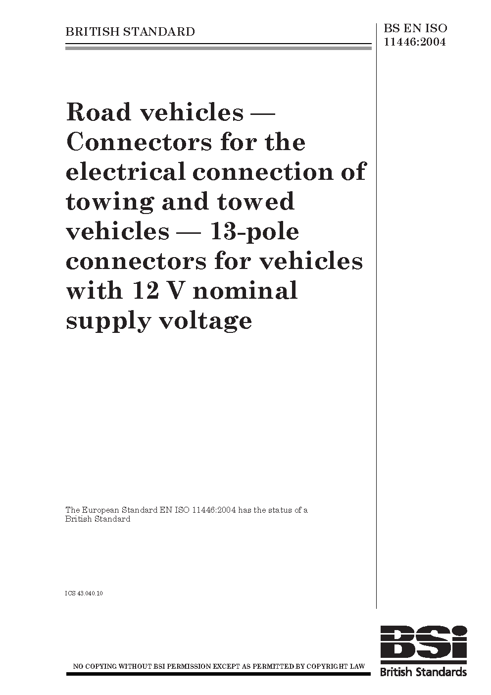 Road vehicles. Connectors for the electrical connection of towing and towed vehicles. 13-pole connectors for vehicles with 12 V nominal supply voltage