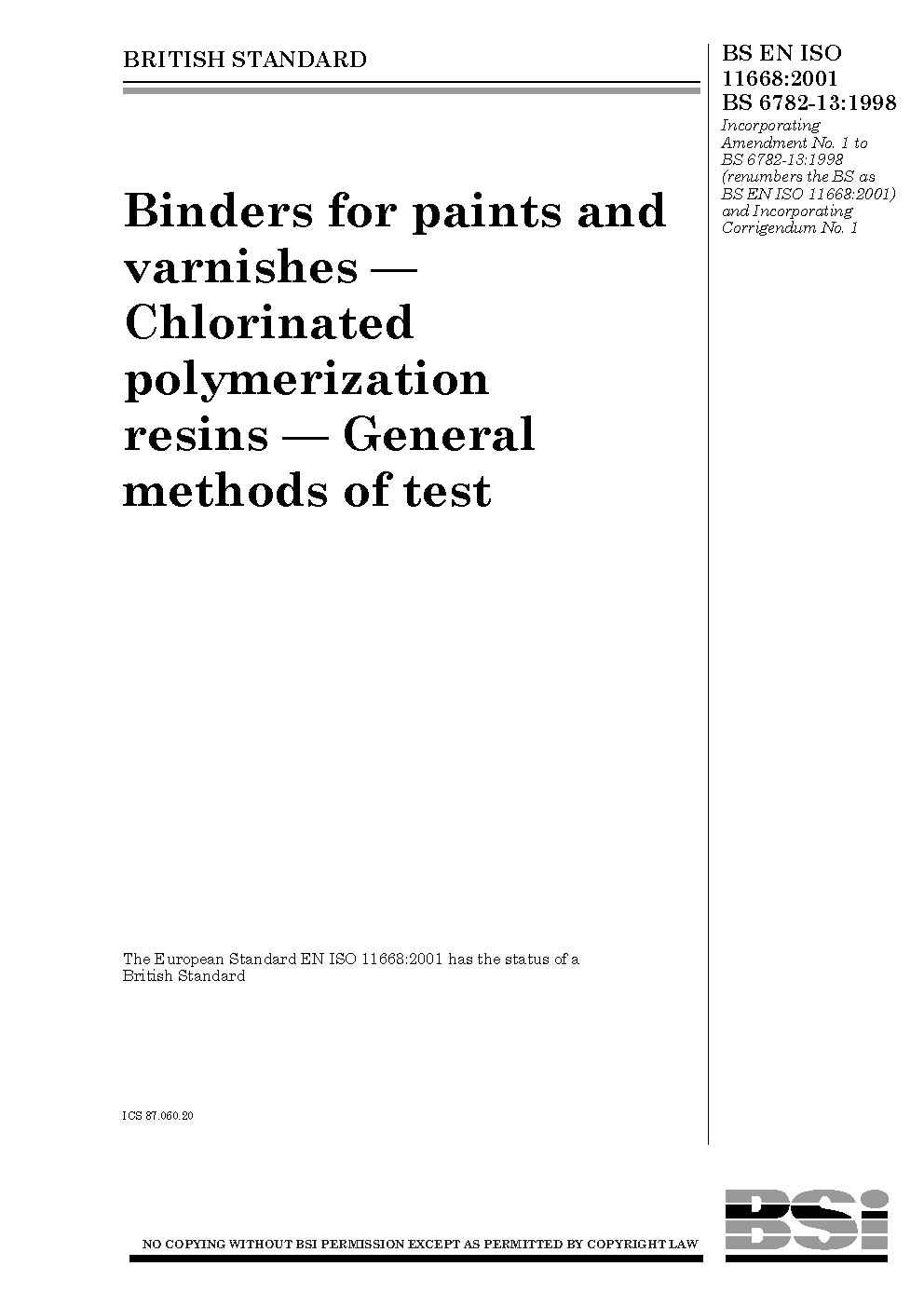 Binders for paints and varnishes. Chlorinated polymerization resins. General methods of test