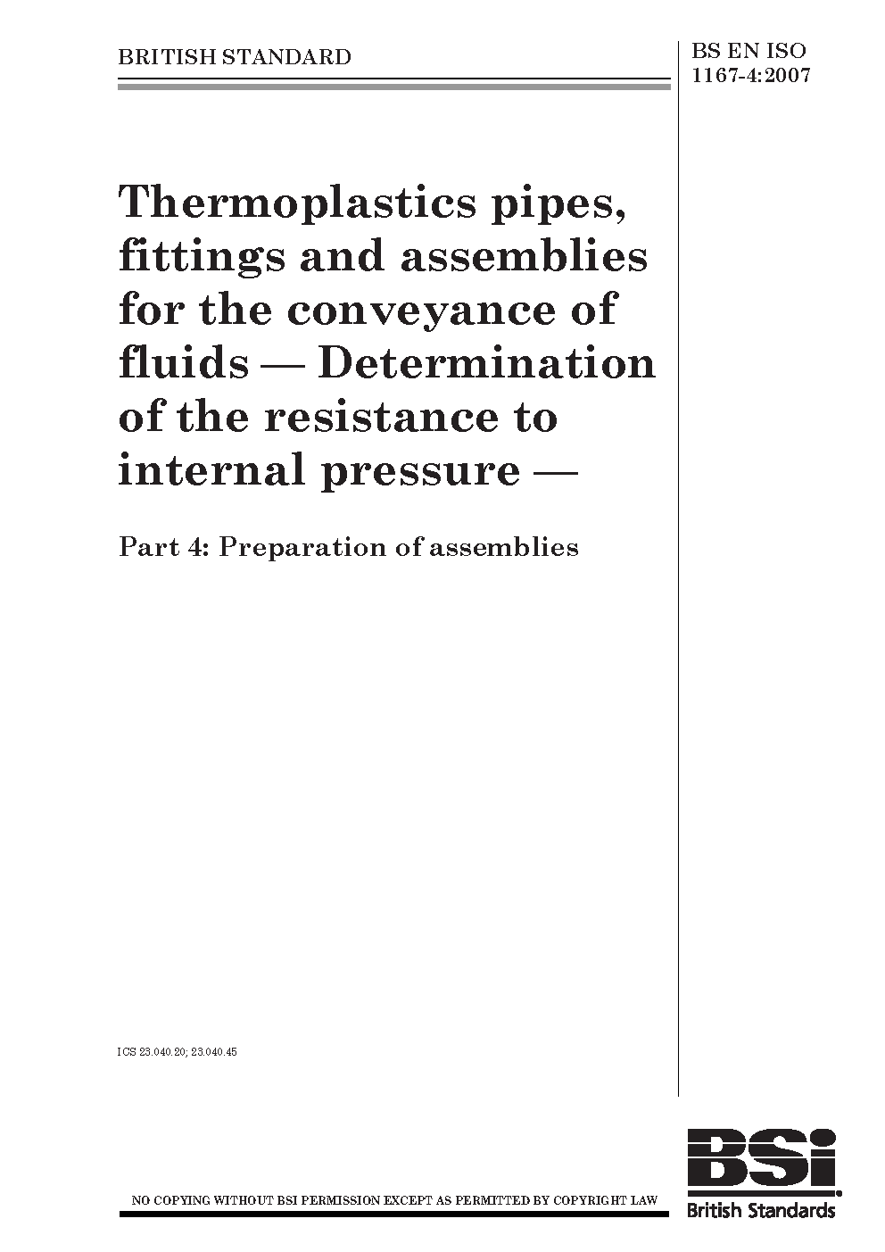 Internal pressure;Pressure testing;Pipework systems;Pipes;Hydraulic tests;Pipe fittings;Thermoplastic polymers;Hydrostatic pressure;Pipelines;Plastic pipelines;Specimen preparation;Fluids;Plastics