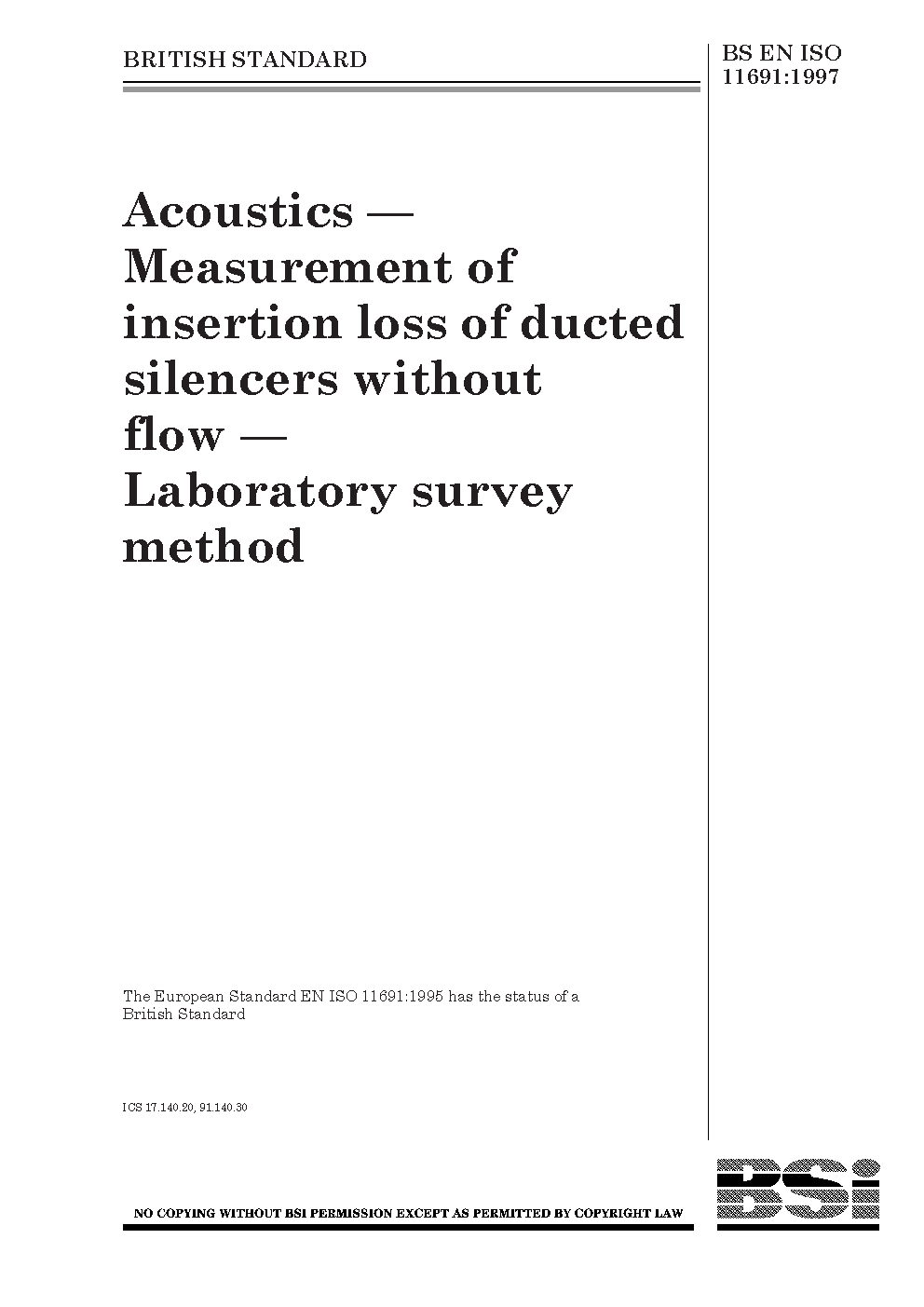 Acoustics. Measurement of insertion loss of ducted silencers without flow. Laboratory survey method