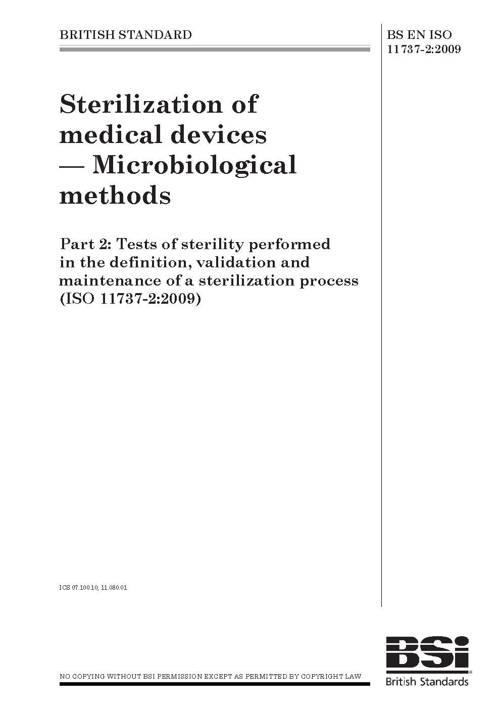 Sterilization of health care products. Microbiological methods Tests sterility performed in the definition, validation and maintenance a sterilization process