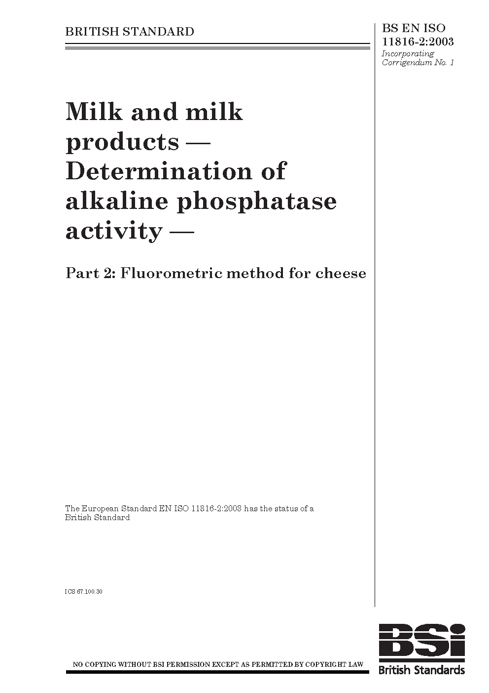 Milk and milk products. Determination of alkaline phosphatase activity Fluorimetric method for cheese