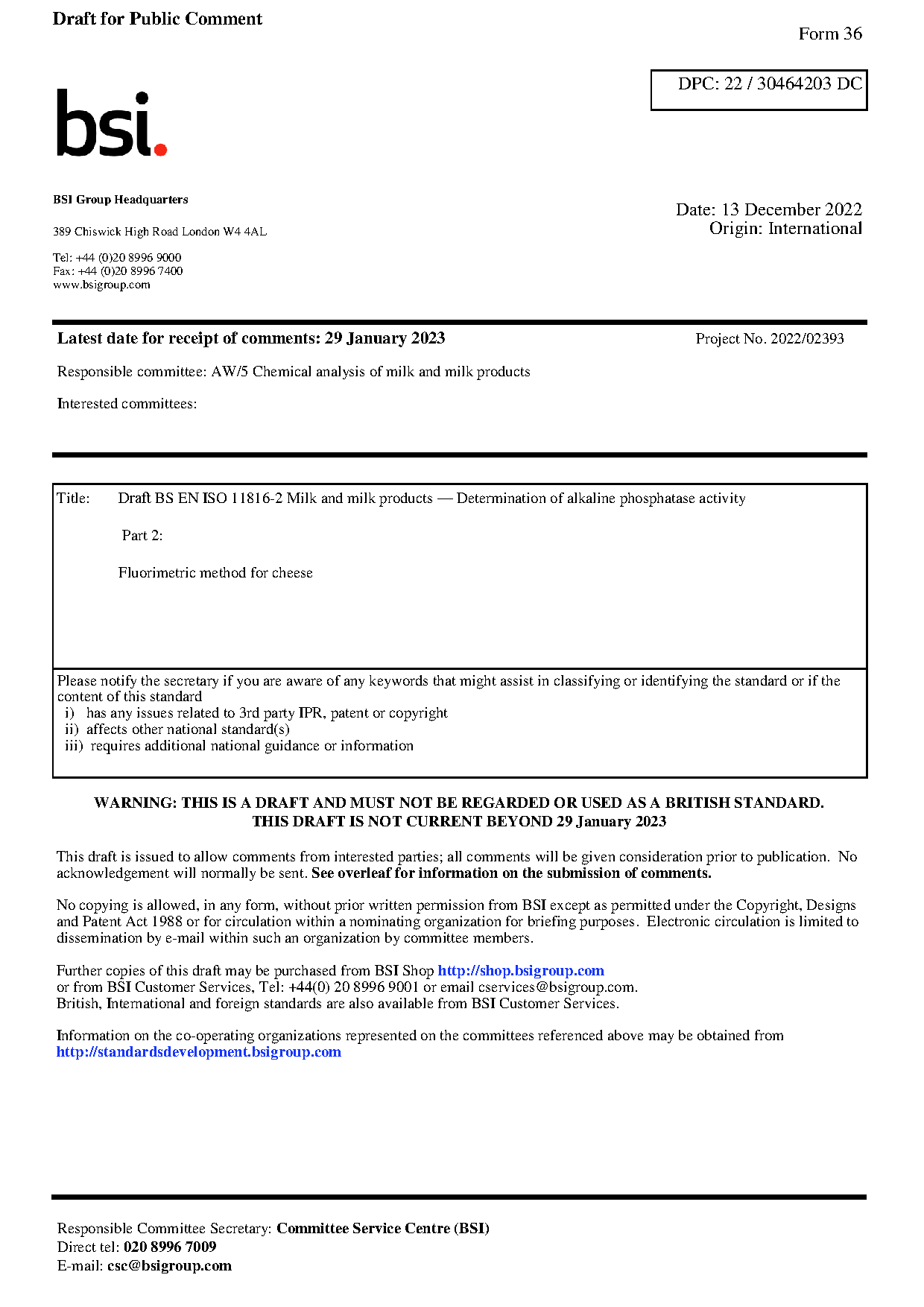 Fluorimetry;Food products;Pasteurization;Milk;Cheese;Dairy products;Chemical analysis and testing;Pasteurized milk;Phosphatase;Enzymes;Sampling methods;Food testing