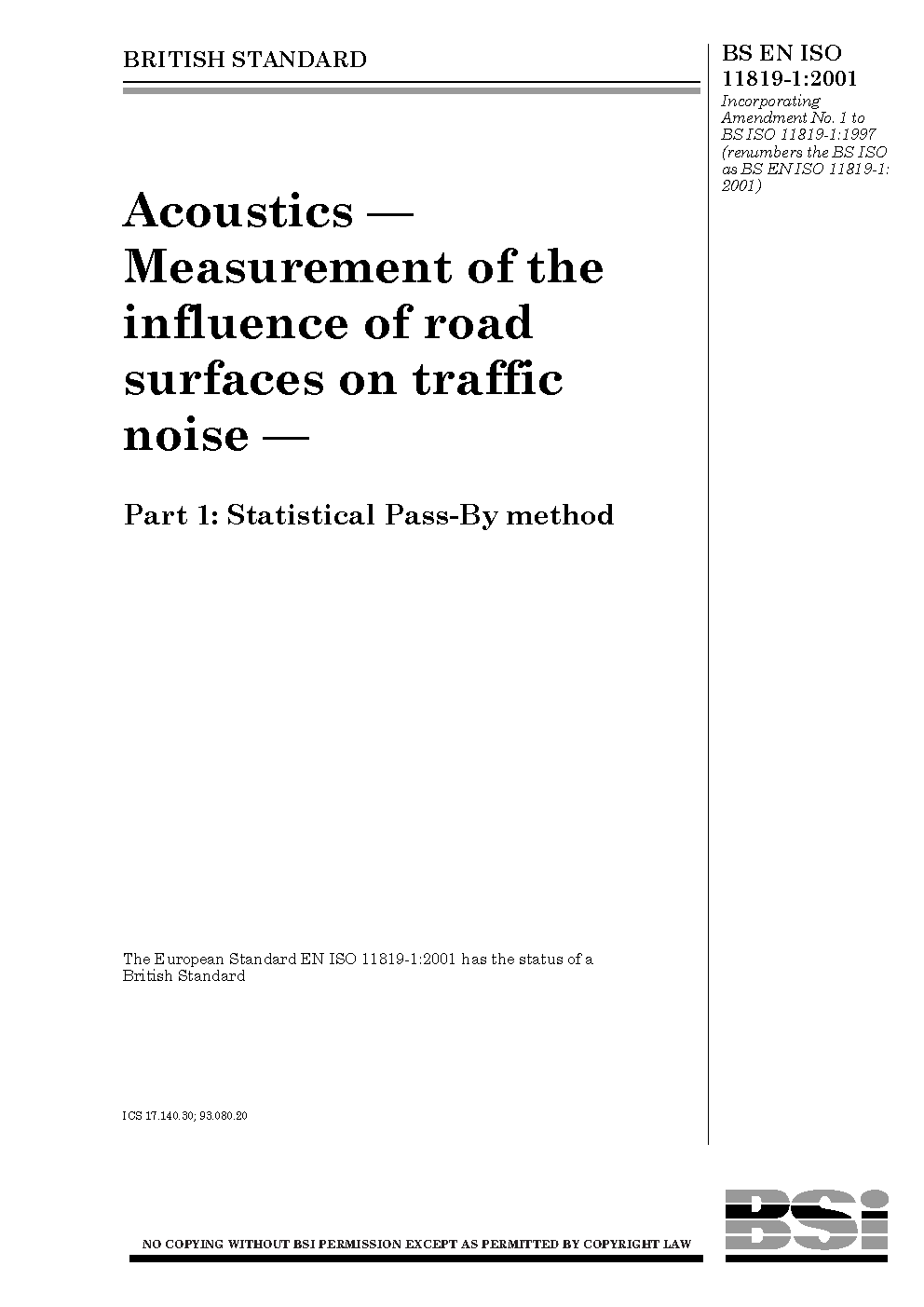 Acoustics. Measurement of the influence road surfaces on traffic noise Statistical pass-by method