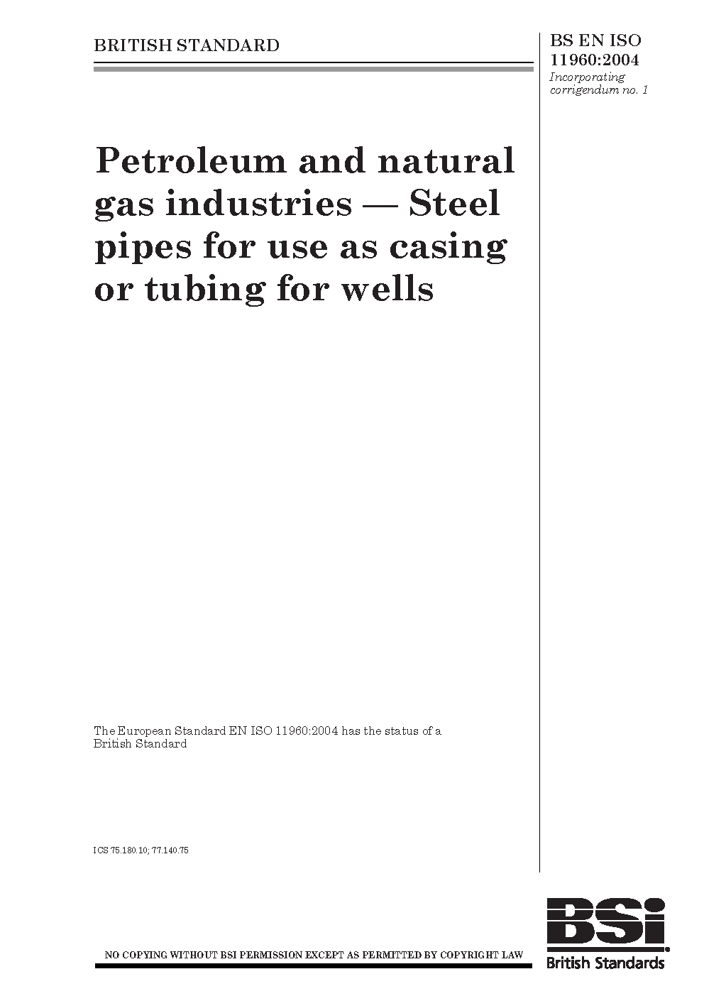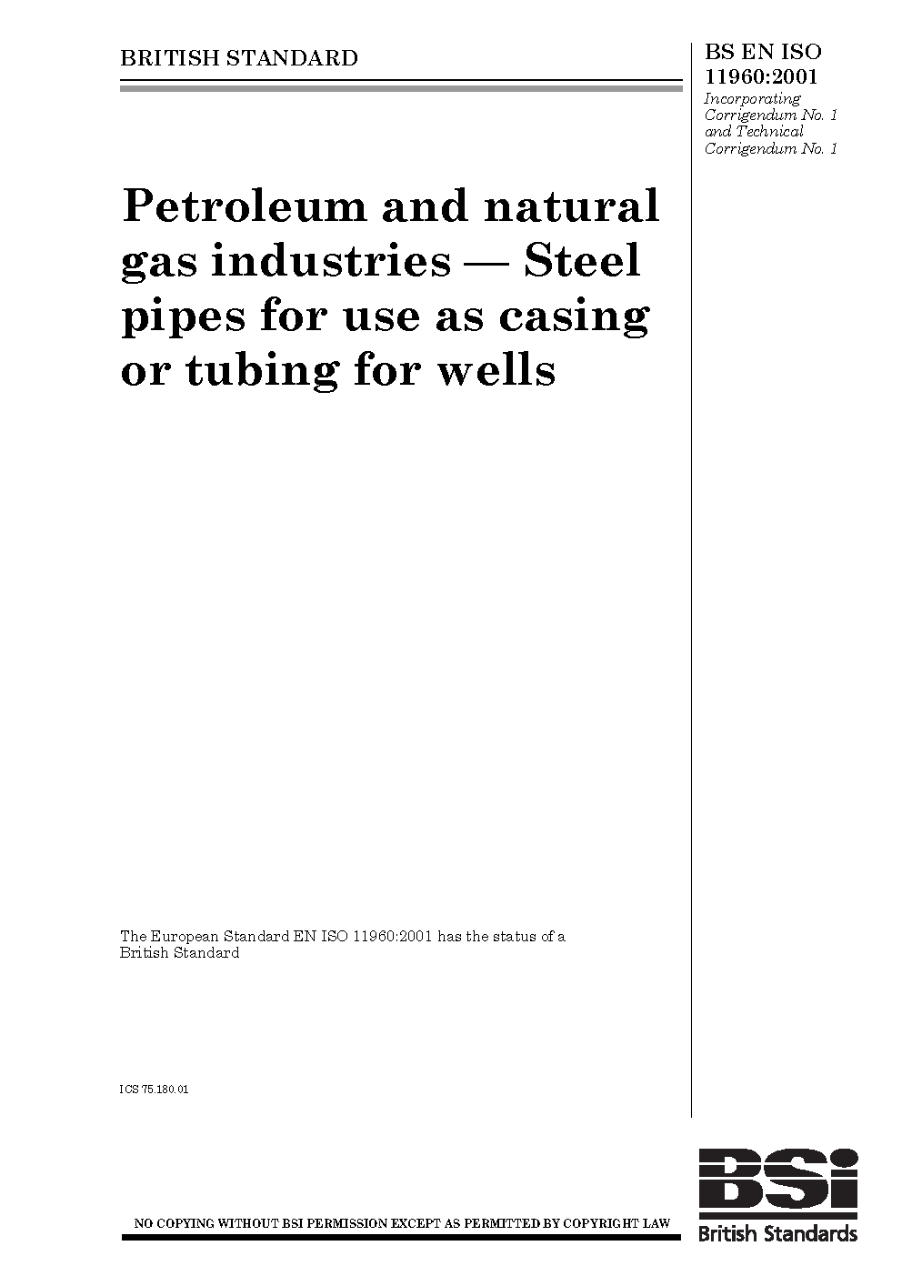 BS EN ISO 11960:2001