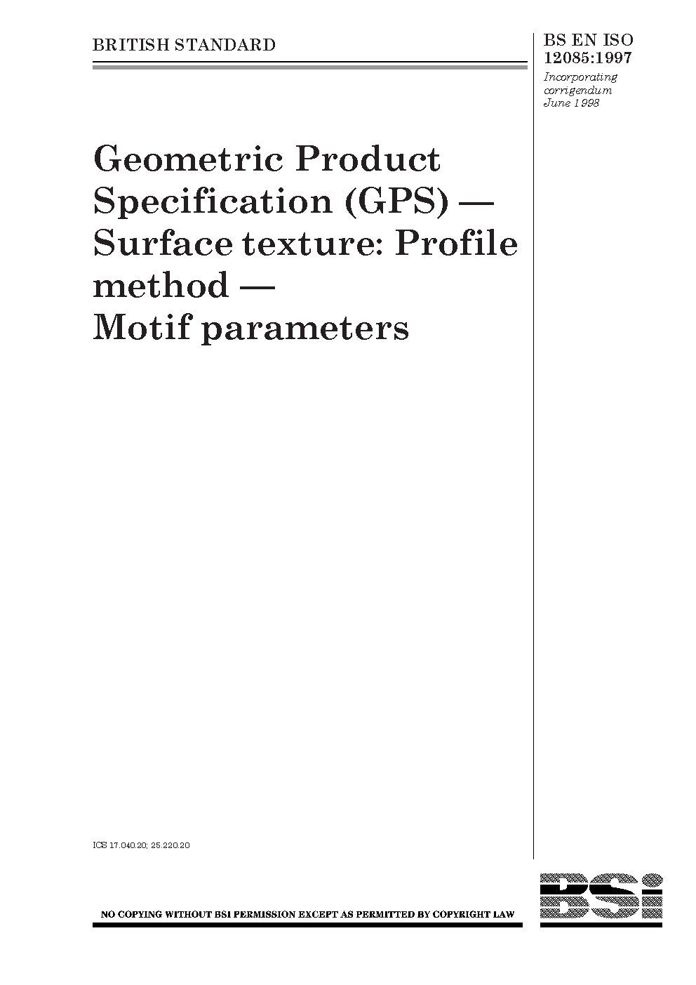 Geometrical product specification (GPS). Surface texture. Profile method. Motif parameters