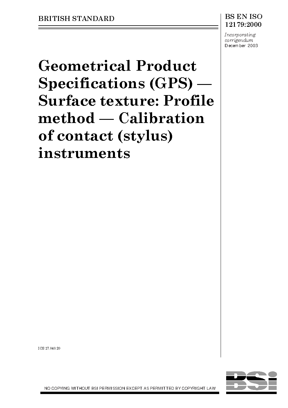 Geometrical product specifications (GPS). Surface texture: Profile method. Calibration of contact (stylus) instruments