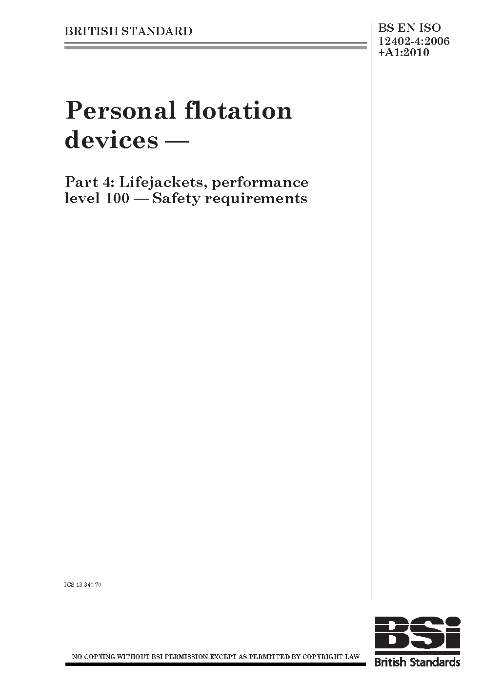 Personal flotation devices Lifejackets, performance level 100. Safety requirements